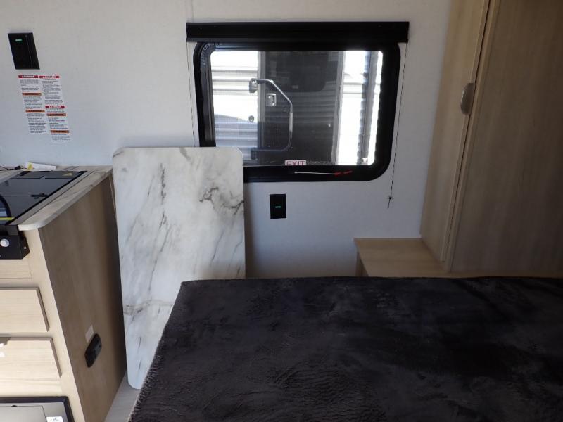 This Limited Edition Salem FSX travel trailer is the perfect couples unit! Included you will find a front queen bed with dual wardrobes, and a sofa with overhead storage for seating. Extra thick luxury vinyl flooring is comfortable underfoot and easy to keep clean. The exterior storage has an oversized door for storage so you can fit those bigger items. The Limited Edition Camp Ready package includes a two-burner cooktop with glass stove cover, a microwave oven, roof vents for adequate air flow, a 20 lb. LP bottle, and more.