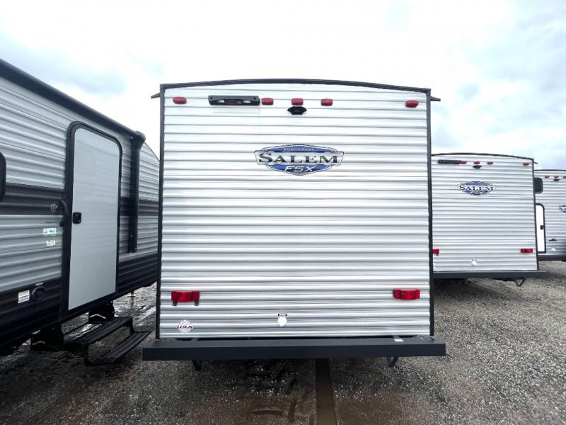 The Forest River Salem FSX travel trailers and toy hauler travel trailers are ultra comfortable and lightweight, perfect for first time or seasoned campers alike! You will love how easy it will be to relax with residential features that will make your space feel just like home, and the durable construction means you can enjoy your RV for years to come. There are a wide variety of floorplans to choose from, including couple's trailers, bunk models, and toy haulers, all with full bath and kitchen amenities and plenty of storage for all your gear!