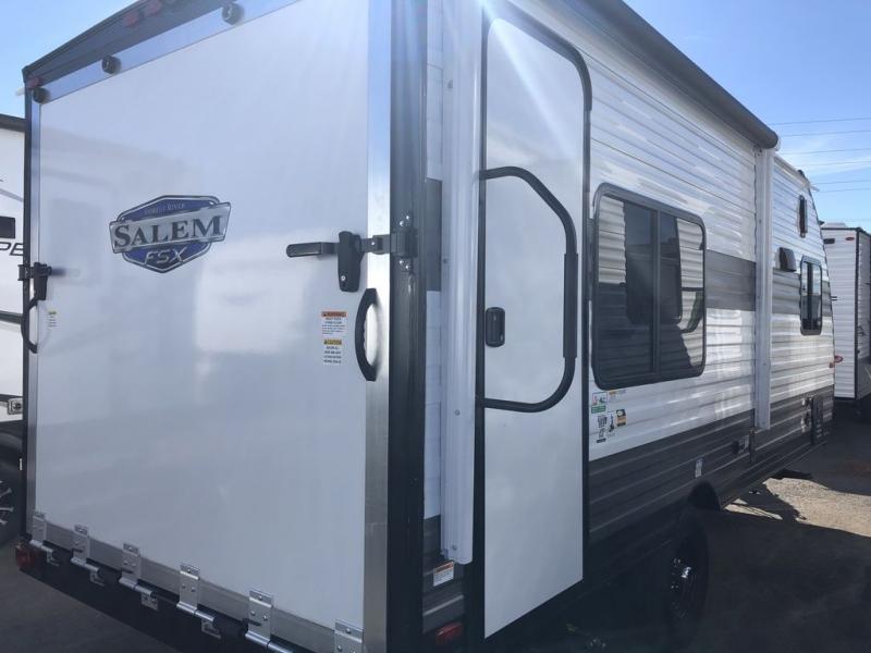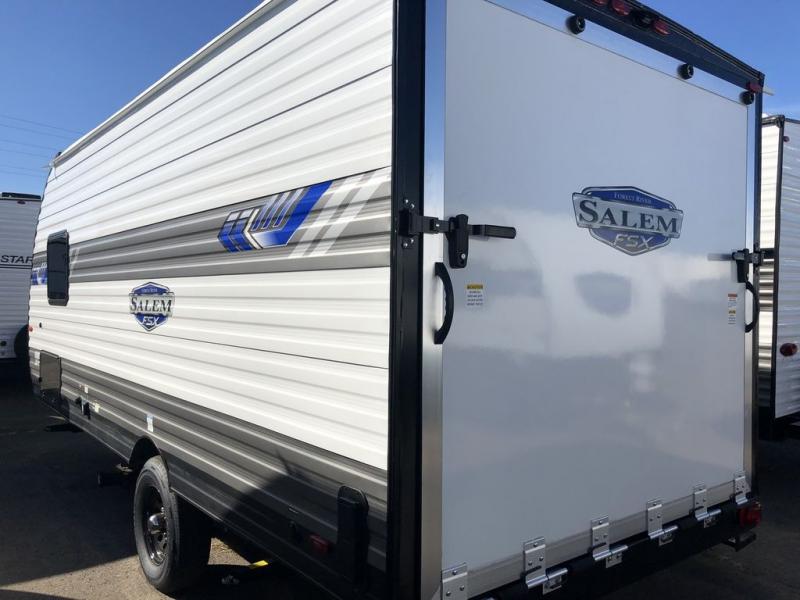 The Forest River Salem FSX travel trailers and toy hauler travel trailers are ultra comfortable and lightweight, perfect for first time or seasoned campers alike! You will love how easy it will be to relax with residential features that will make your space feel just like home, and the durable construction means you can enjoy your RV for years to come. There are a wide variety of floorplans to choose from, including couple's trailers, bunk models, and toy haulers, all with full bath and kitchen amenities and plenty of storage for all your gear!