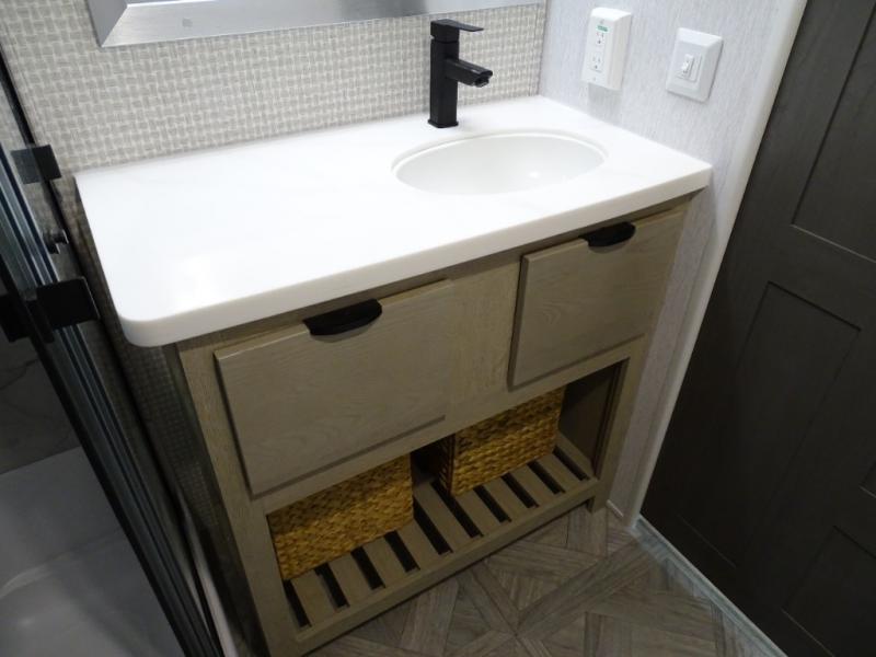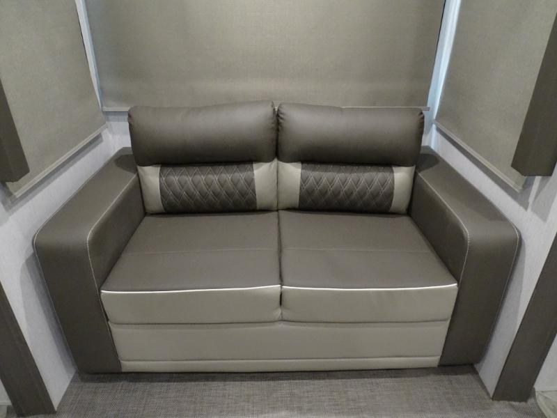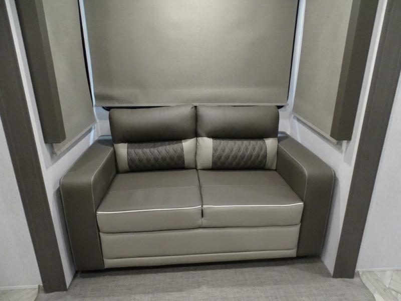 You will experience a home away from home with any one of these Forest River Salem Grand Villa destination trailers! Their construction consists of a 12" forged I-beam frame, a cambered chassis, and plywood floor decking, as well as 5" bowed truss roof rafters, 3/8" roof decking, and color coded water lines to make life easier. The one-piece, seamless slides and 106" interior living room height makes for more walking around space. A Best in Class Value package includes upgraded designer furniture, a central vacuum with sweep attachment, and stainless steel kitchen appliances. Plus, it also features a heated and enclosed Accessi-Belly with removable panels and an exterior LED light strip under the awning. Come choose your favorite model today!