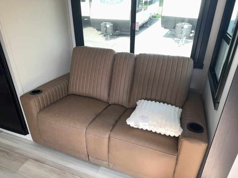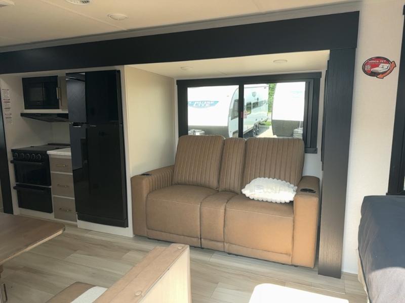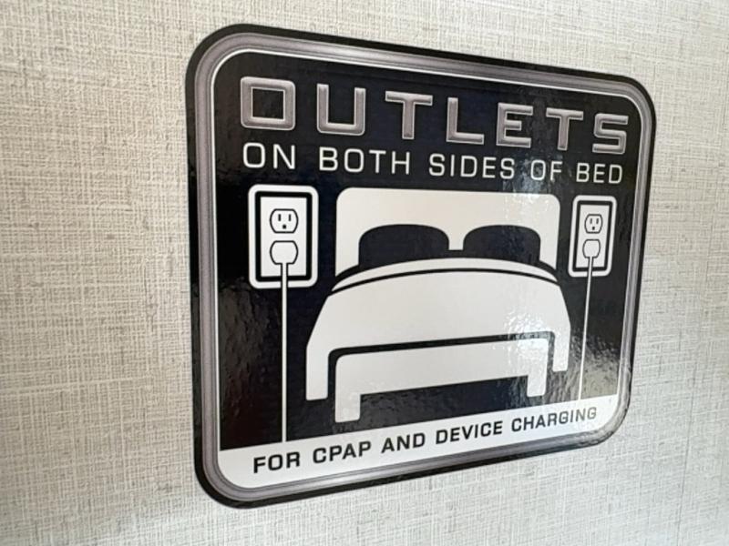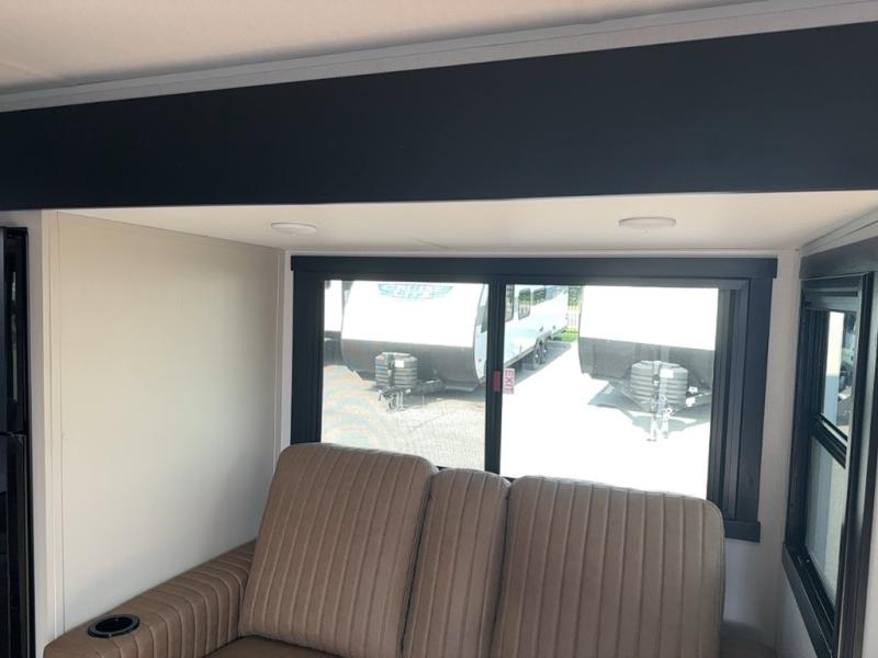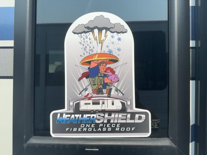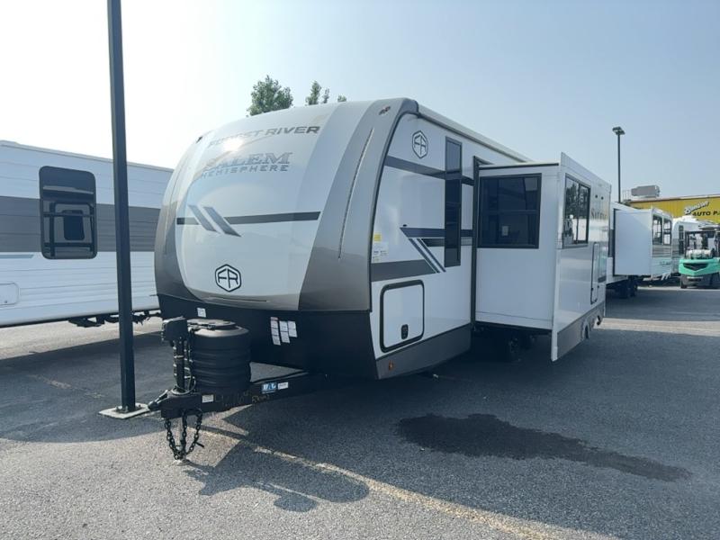 This Salem Hemisphere Hyper-Lyte trailer is perfect for a couple or even three or four if you don't mind converting the dinette for added sleeping space. You will love the panoramic windows that bring your surrounding views right inside, and on a sunny day keeps it light and airy along with the skylight overhead in the main living area as well as added space thanks to the large slide. Snuggle up each night on the queen bed with Versa-Tilt for a great night's rest and enjoy the 30" x 36" walk-in shower with skylight as you wake. A 16' awning provides added living space and protection from the elements if you want to enjoy as much time outdoors as possible, even cooking can be done with the outside kitchen including a refrigerator, griddle, and spray port for cleaning up. No worries about packing all of your fun games both inside and out; with the Texas size pass-through storage you can bring it all along!