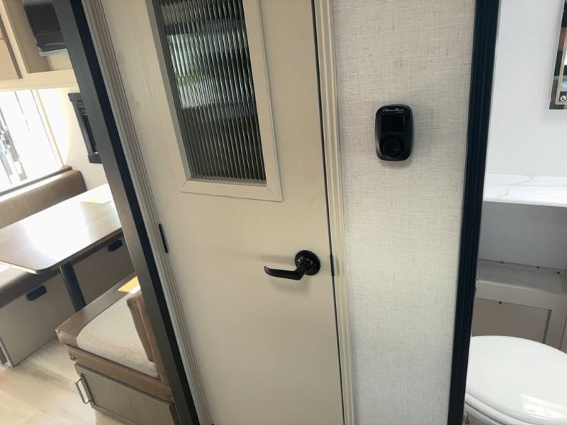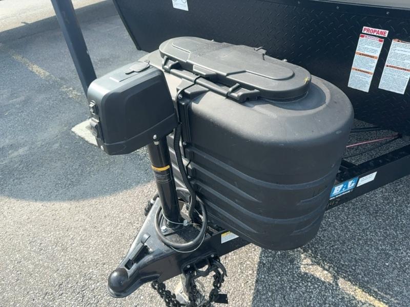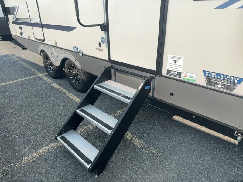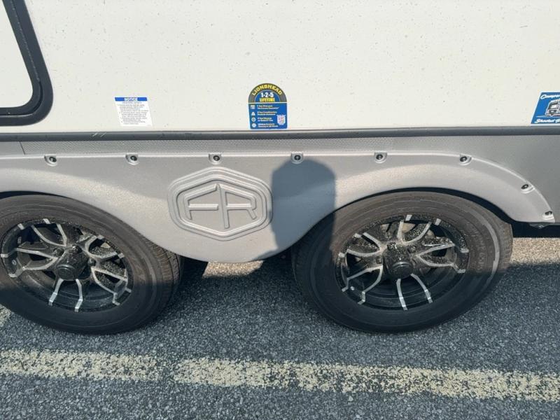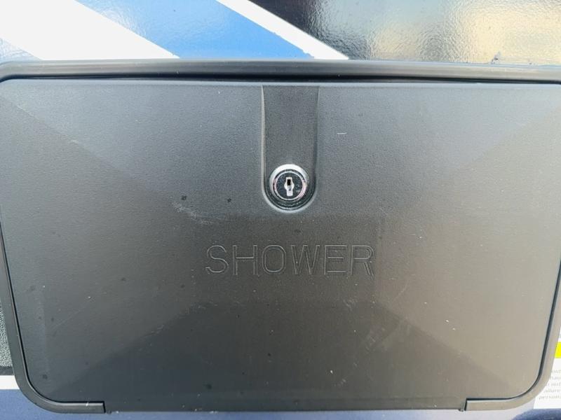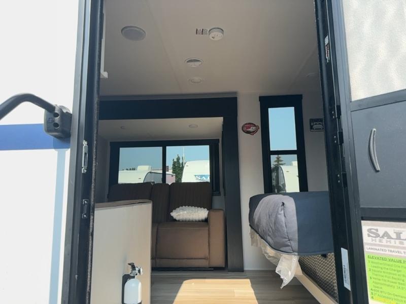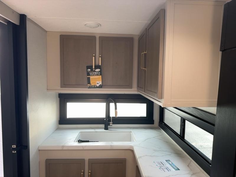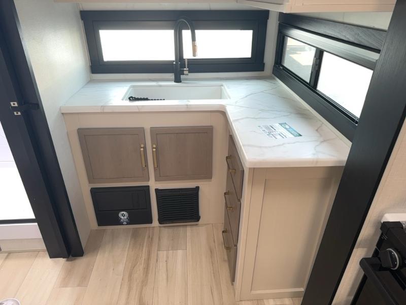 With any Salem Hemisphere Hyper-Lyte travel trailer by Forest River, you will appreciate a wide stance axle and Goodyear radial tires for smooth towing, plus vacuum bonded "Aluma Frame" sidewalls and floor for added durability. There are also square windows with built-in shades with reflecting thermal-foil backing and painted hardwood trim to help keep your trailer cool during the summer. The 2" accessory hitch receiver will allow you to bring along more camp gear and the tankless water heater is a feature you won't want to camp without! Nordic Marble countertops throughout and corresponding Frozen Nordic backsplash will give your space a more modern look, and the LED TV and Furrion soundbar will wash away rainy day blues. Outside, your furry friend will be happy with the shaded pet tether and security hook, and there is even an outside shower with hot and cold water to fill the dogs water bowl and wash off hiking boots!