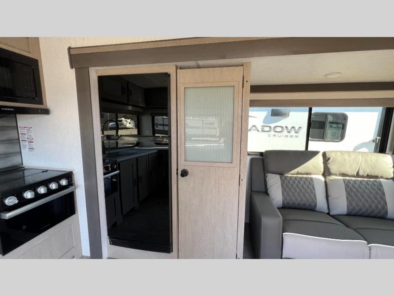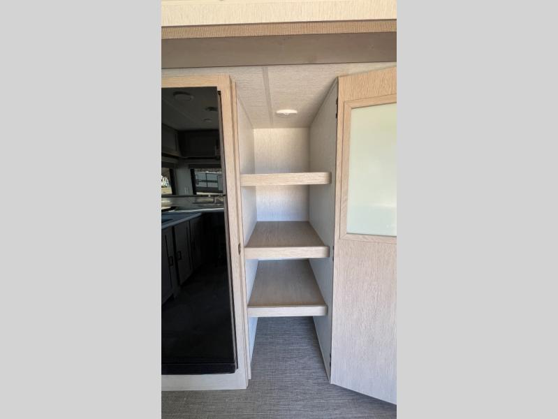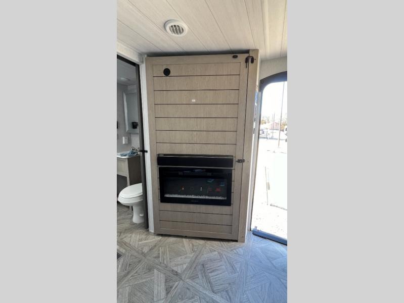 The Salem Platinum 22ERASX is the perfect couples coach! The front kitchen features large windows, a breakfast bar, lots of counter space, a three-burner cooktop with oven, refrigerator, and walk-in pantry. The living area includes Thomas Payne theater seating and an entertainment center with a fireplace AND hidden storage behind the entertainment center! The walk-thru bath has a walk-in shower, vanity with sink, medicine cabinet, plenty of storage, and a toilet. The rear bedroom features a custom king Versa-lift bed with a wardrobe on each side and storage above and below. Enjoy the outdoors with the power awning and pass-through storage! This unit also has an on-demand water heater...