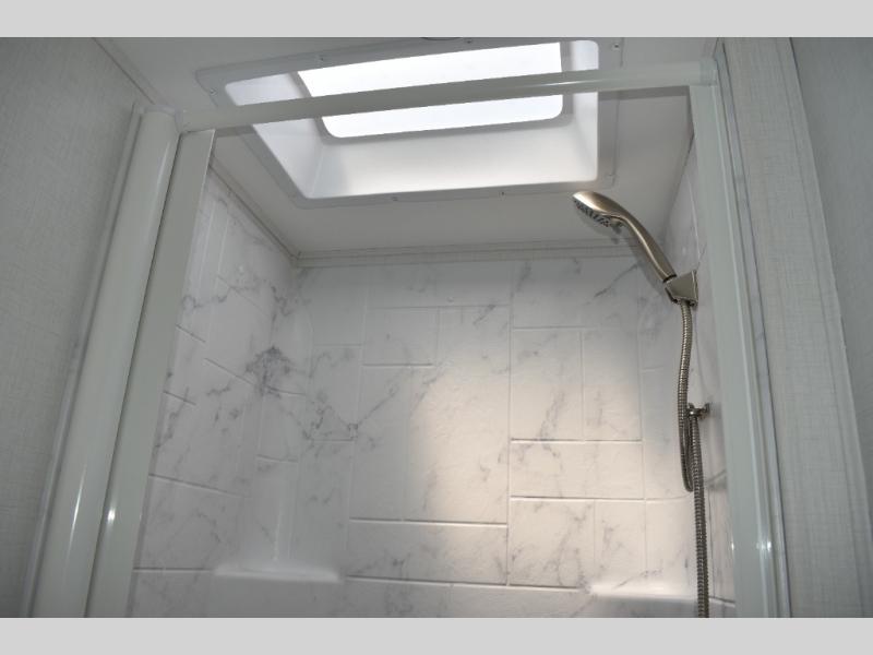 - Full bathroom with a large shower and skylight for extra natural light and headroom.