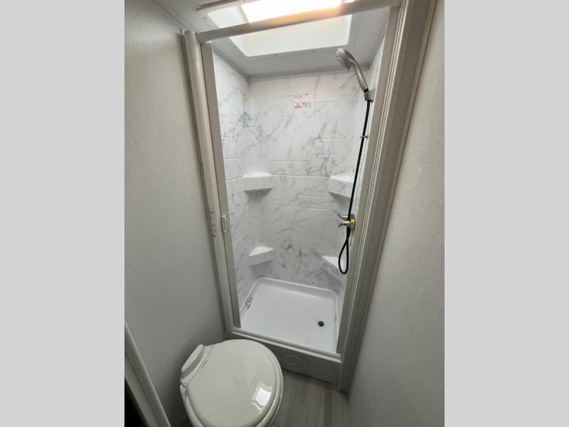 Don't forget to pack your sense of adventure when you load up this Sunseeker LE Class C gas motorhome! You'll have plenty of room on the interior to pack some belongings away in the two large storage drawers in the booth dinette, in overhead cabinets, as well as in the pantry and wardrobe. In the kitchen there is a cordless 12V charging plate that you can use to fill your phones with power, and the convection microwave will make meals super easily. An overhead bunk ladder lets you get to the 60" x 80" bunk over the cab without much effort, and you also have a queen-size bed with wedge mattress in the back slide for a great night of sleep. Wake up in the morning and grab a cold glass of juice from the 10.7-cubic foot refrigerator before starting off on your day of hiking and sightseeing.
