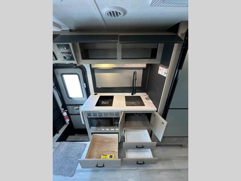 Measuring under 25 feet, this motorhome offers the perfect balance between compact agility and interior comfort. Navigate tight city streets or scenic backroads with ease, and take advantage of 5,000 lbs of towing capacity for your gear or small trailer. The 24.5-gallon fuel tank and impressive fuel economy mean more time exploring, less time at the pump.
