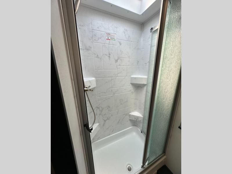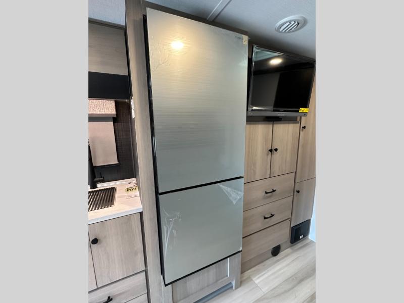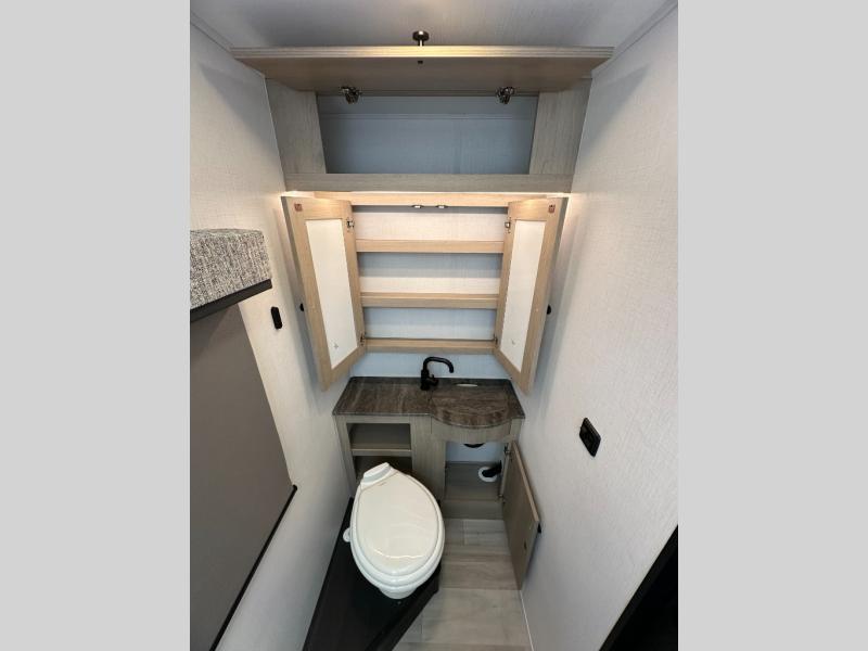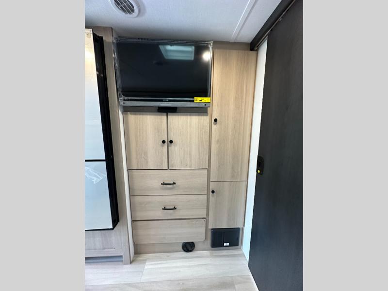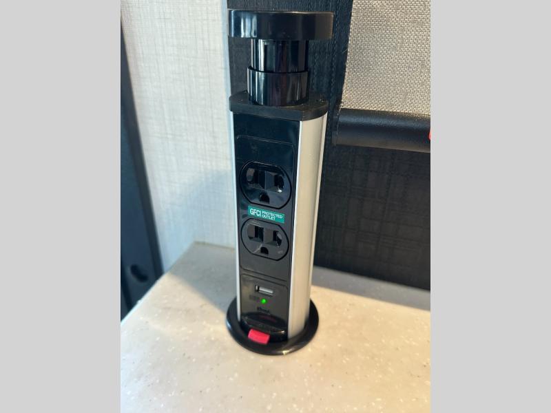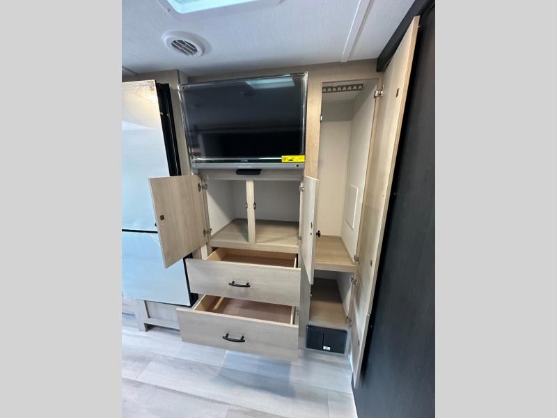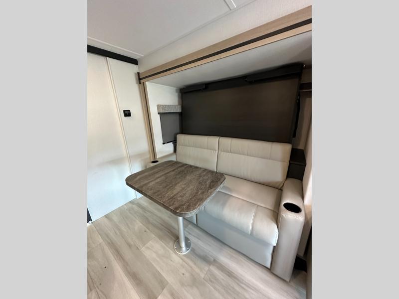 Step inside and feel at home with a bright, open layout built for comfort and function. The U-shaped dinette provides a cozy spot to dine, work, or unwind—and easily converts to a bed for extra sleeping space. Add the powered drop-down overhead bunk, and you've got sleeping options for everyone.