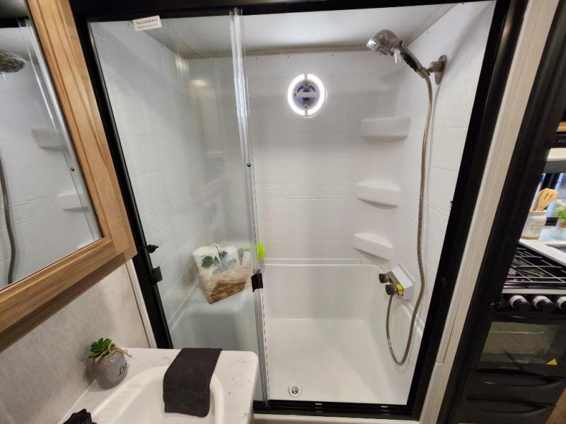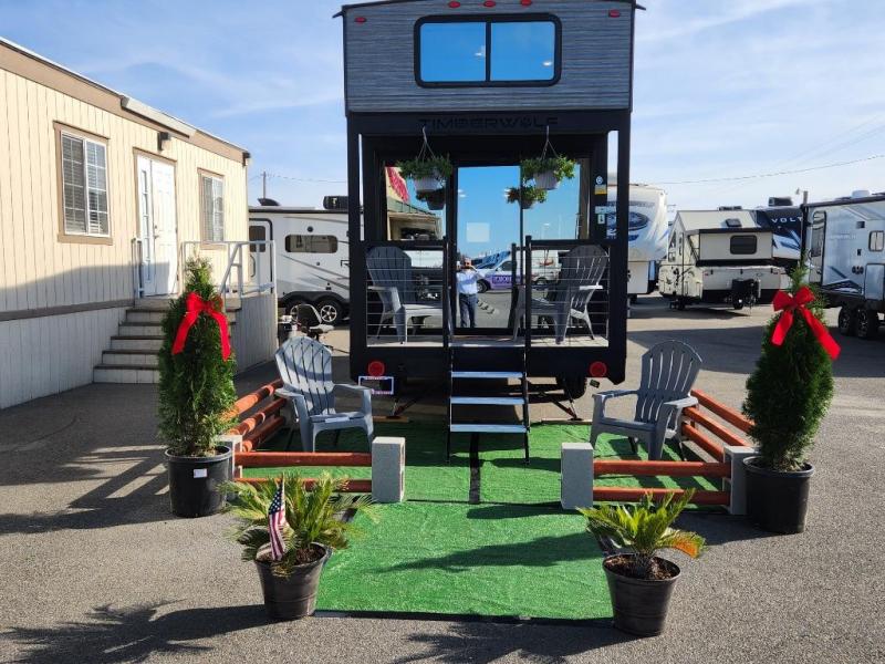 You're going to want to take a closer look at the Forest River Timberwolf destination trailers! These trailers have a backup camera system which will be extremely helpful as you maneuver these large units into the right spot. Some of the construction features include a seamless roofing membrane with heat reflectivity, a premium wheel package, power gear frame technology with space-saver rail design, and an armored underbelly tank enclosure. Use the USB charging stations to keep your phones ready to go, and stay in control of your trailer's electrical functions with the total control app and remote control system.