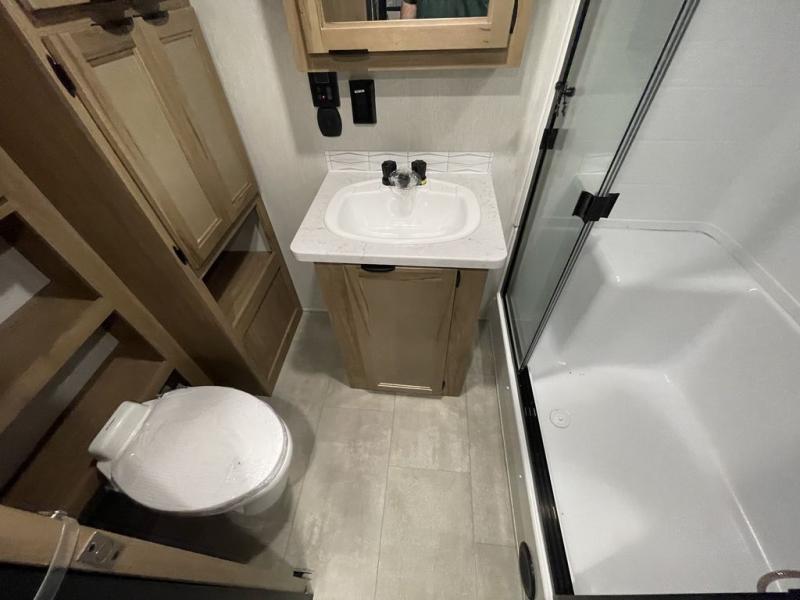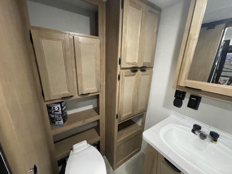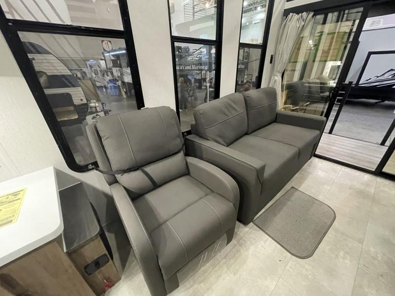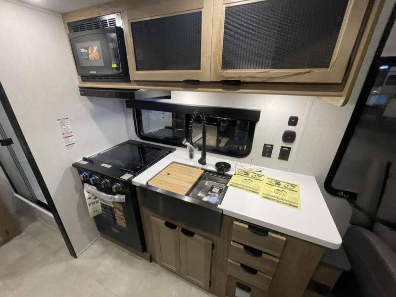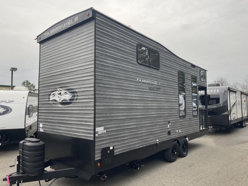 Enjoy comforts of home wherever you decide to roam in a Timberwolf destination trailer by Forest River. The seamless roofing membrane with heat reflectivity and power gear frame technology provide a durable foundation to your RV. You will also appreciate the exclusive solar thermo controlled reflective tinted safety glass windows, tire pressure monitors, and an on-demand tankless water heater to make extended stays easier than ever. Inside, the night shades will provide your crew with privacy, while the LED lights illuminate your space. There are also light filtering sheer shading premium zebra blinds, along with a premium bedding ensemble and comforter, USB charging stations, a supersized central A/C unit, and many more comforts!