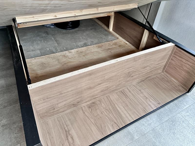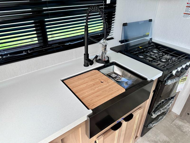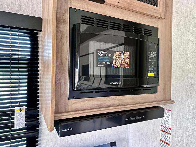 You're going to want to take a closer look at the Forest River Timberwolf Black Label destination trailer! These trailers have a backup camera system which will be extremely helpful as you maneuver these large units into the right spot. Some of the construction features include a seamless roofing membrane with heat reflectivity, a premium wheel package, power gear frame technology with space-saver rail design, and an armored underbelly tank enclosure. Use the USB charging stations to keep your phones ready to go, and stay in control of your trailer's electrical functions with the total control app and remote control system. The Black Label Package also provides upgraded solid surface countertops, upgraded showerheads in the bathroom, designer cushion fabrics, a hands free baggage door catch, plus so much more!