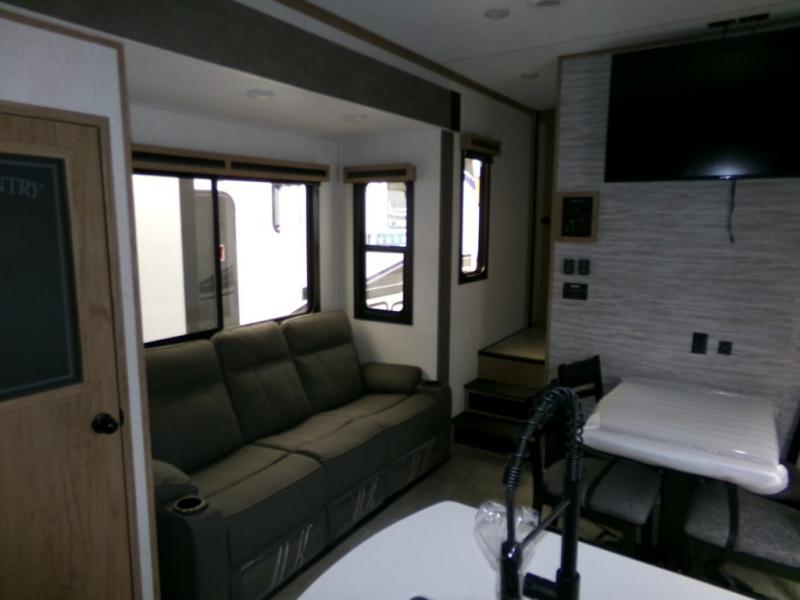 This rig lets you compare—value-packed features vs competitors costlier on options and comfort—and win. At 45' long with two slides, it’s spacious yet tow-wise.
