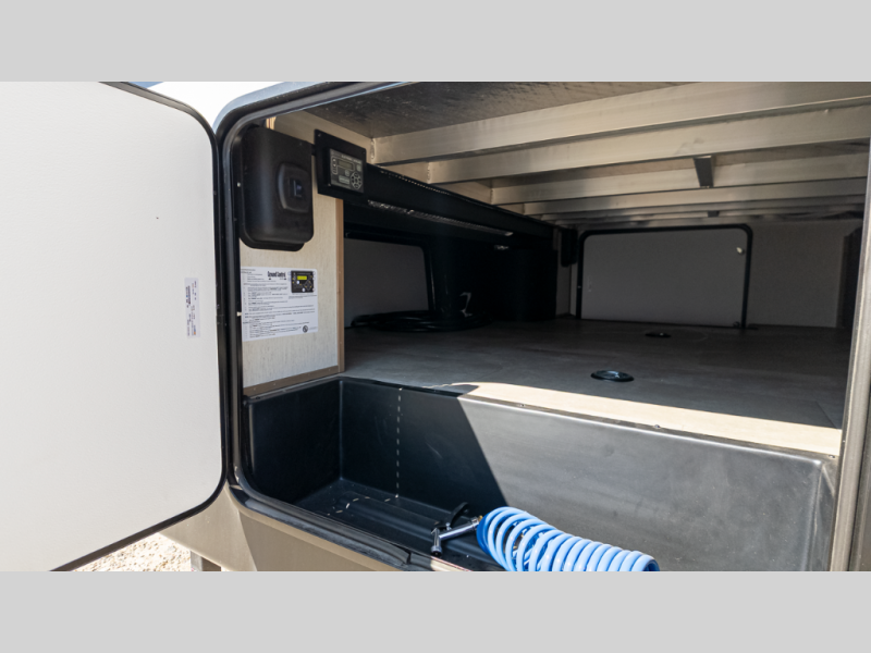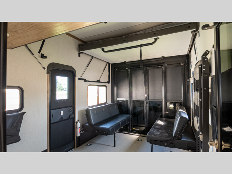 The ramp door patio and heavy-duty 5,000 lb tie-downs in the garage handle ATVs, motorcycles… you name it—while the 3,646 lb cargo capacity keeps it safe on the road.