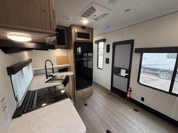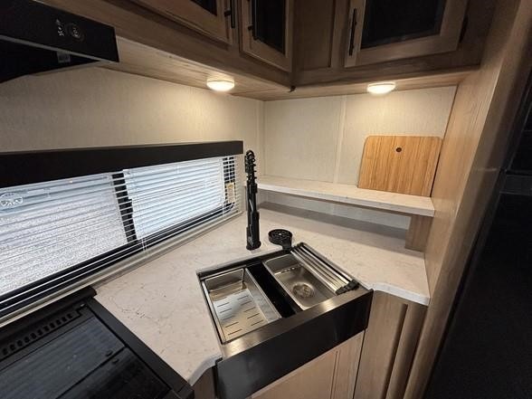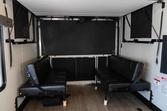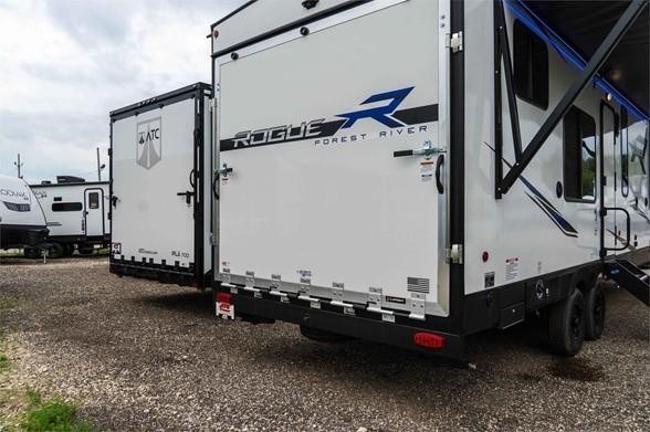 With any Vengeance Rouge SUT toy hauler travel trailer or fifth wheel by Forest River you can bring along your favorite ride-on toys, while still enjoying at-home comforts. Each one is built with a seamless roofing membrane with heat reflectivity and an armored underbelly tank enclosure for added strength and durability, and the 8' 6" wide body construction means you can bring along your favorite ride-on toys. Inside, you'll find a 1000 watt microwave and a three burner cooktop with an oven, seamless countertops, plus zebra shades that filters light and are blackout capable. These toy haulers also include 12V heat pads on all the holding tanks, a 15,000 BTU A/C unit, and many more amenities to make camping easier than ever.