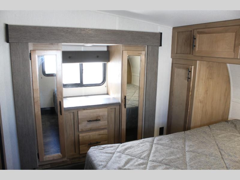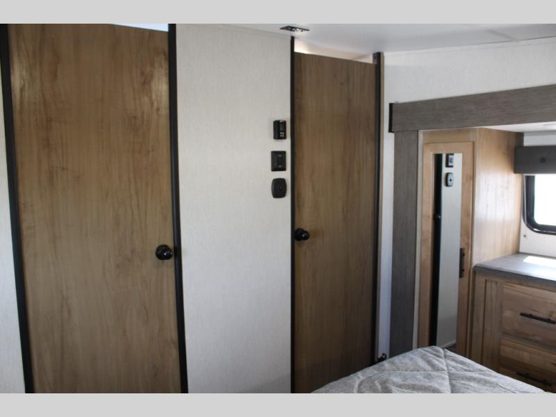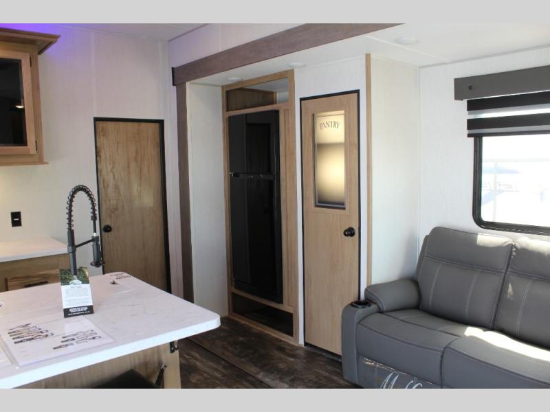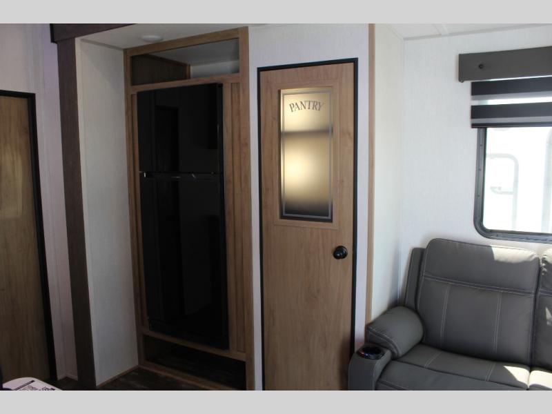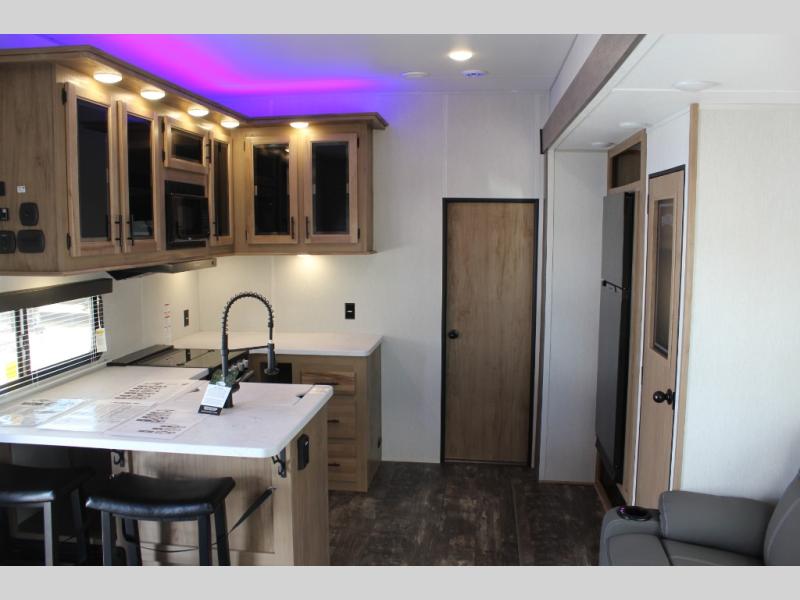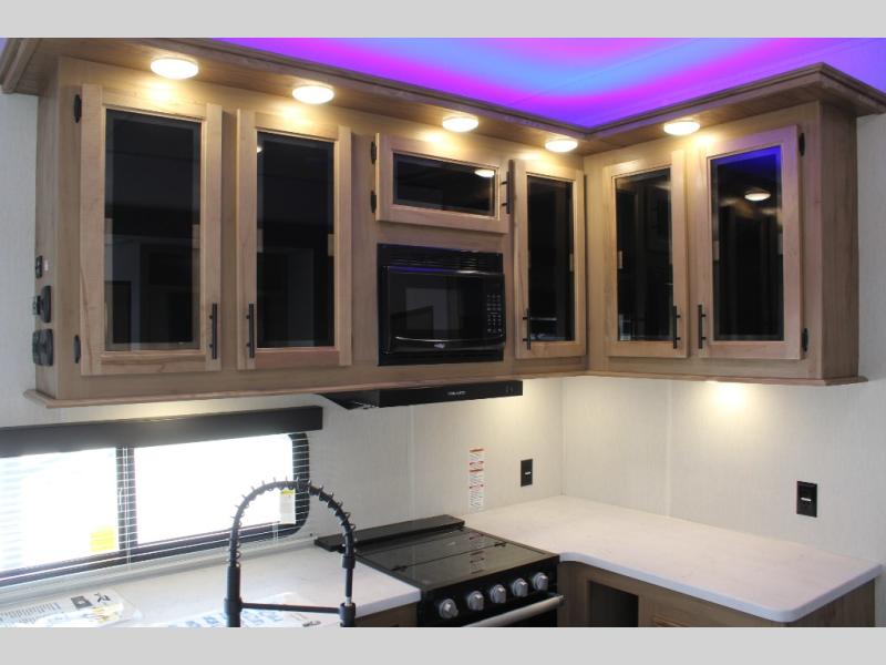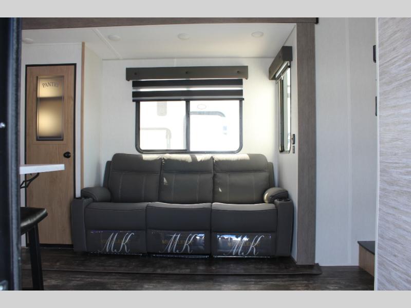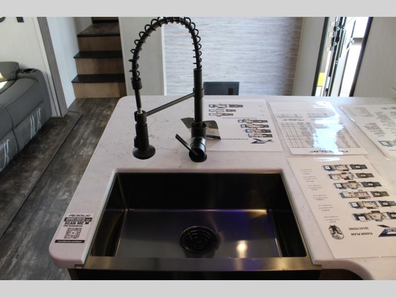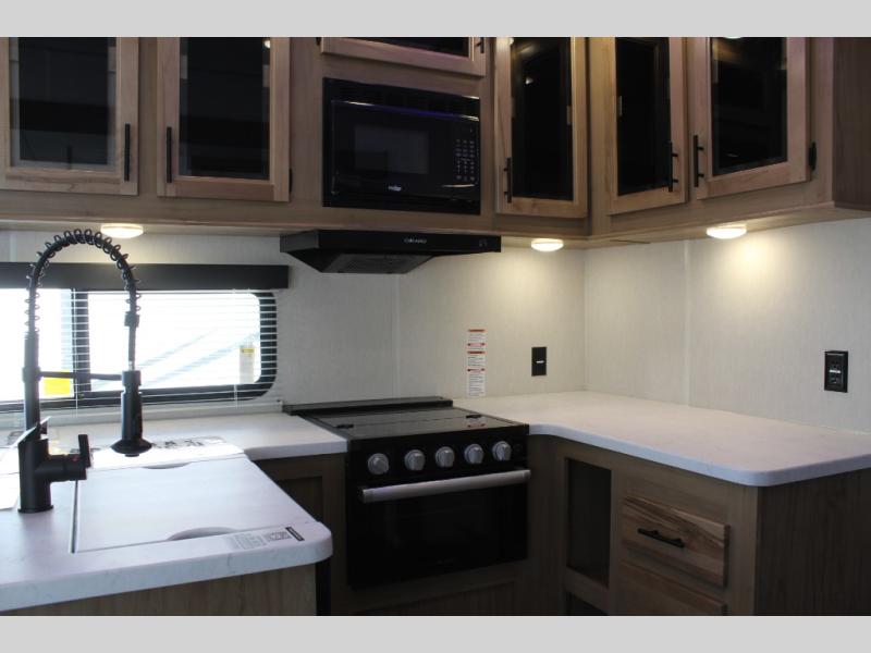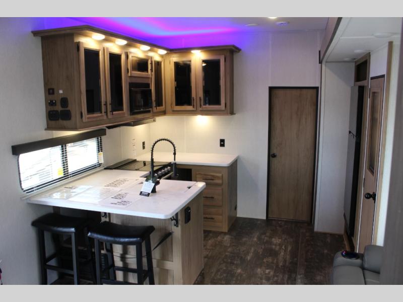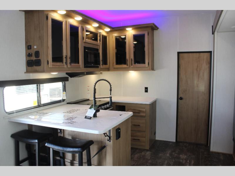 With any Vengeance Rouge SUT toy hauler travel trailer or fifth wheel by Forest River you can bring along your favorite ride-on toys, while still enjoying at-home comforts. Each one is built with a seamless roofing membrane with heat reflectivity and an armored underbelly tank enclosure for added strength and durability, and the 8' 6" wide body construction means you can bring along your favorite ride-on toys. Inside, you'll find a 1000 watt microwave and a three burner cooktop with an oven, seamless countertops, plus zebra shades that filters light and are blackout capable. These toy haulers also include 12V heat pads on all the holding tanks, a 15,000 BTU A/C unit, and many more amenities to make camping easier than ever.