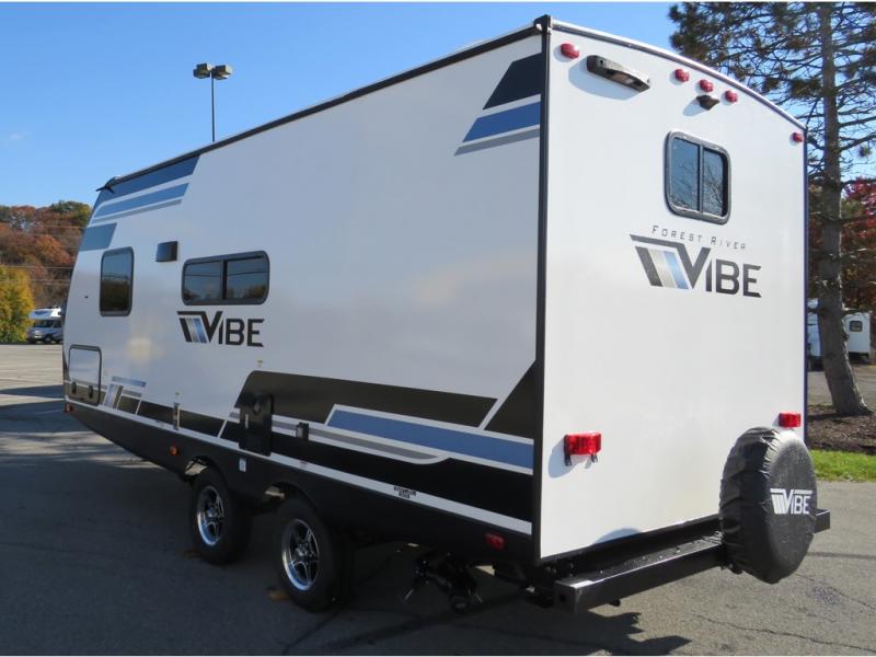 Each Vibe travel trailer by Forest River includes Hyper Lyte construction and a durable laminated "Aluma Frame" for years of use. The heated and enclosed underbelly allows you to extend your camping season, and the LED-lit exterior speakers will keep the party going as you grill outdoors and visit with family. Inside, you'll find LED lights to keep everything bright and open, a Bluetooth stereo, roller shades for your privacy, and many more amenities per region. These models also include cable and satellite prep and a digital TV antenna with a booster so you can stay connected to the outside world if you choose. Make the easy choice and choose a Vibe travel trailer today!
