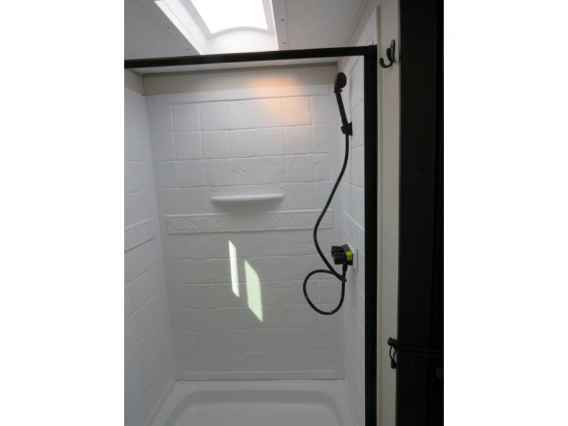 You will love camping every other weekend in this spacious travel trailer for three to four. There is a full rear bath with a spacious shower and medicine cabinet for your toiletries. You can relax on the jackknife sofa during the day and at night transform it into a Murphy bed. Easily prepare your meals in the kitchen on the three burner cooktop or in the oven. There is also an upgraded 10.7 cu. ft. residential refrigerator, plus a convection microwave oven for meals on the go. The bar top with two stools is the perfect place to enjoy your meals as you have a flip-open window to let in some fresh air. This model also includes an outside kitchen with an induction cooktop, a 14' power awning, plus an outside spray port for convenience!