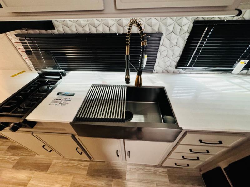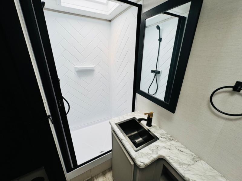 Each Vibe travel trailer by Forest River includes Hyper Lyte construction and a durable laminated "Aluma Frame" for years of use. You will also find an outside shower, a 200-watt roof mounted solar panel, and heated tank pads that will help extend your camping season. The Reserve Package has many at-home features you are sure to enjoy, like the decorative window treatments, solid surface countertops, new black chef's appliance package with an air fryer, and more! These models also include cable and satellite prep and a digital TV antenna with a booster so you can stay connected to the outside world if you choose. Make the easy choice and choose a Vibe travel trailer today!