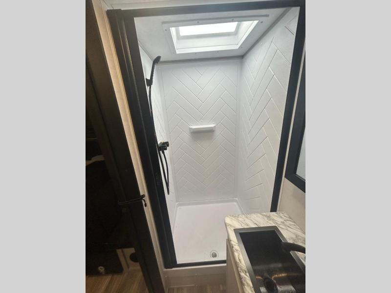 Each Vibe travel trailer by Forest River includes Hyper Lyte construction and a durable laminated "Aluma Frame" for years of use. You will also find an outside shower, a 200-watt roof mounted solar panel, and heated tank pads that will help extend your camping season. The Reserve Package has many at-home features you are sure to enjoy, like the decorative window treatments, solid surface countertops, new black chef's appliance package with an air fryer, and more! These models also include cable and satellite prep and a digital TV antenna with a booster so you can stay connected to the outside world if you choose. Make the easy choice and choose a Vibe travel trailer today!
