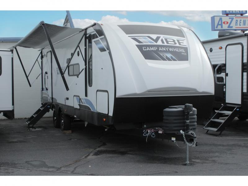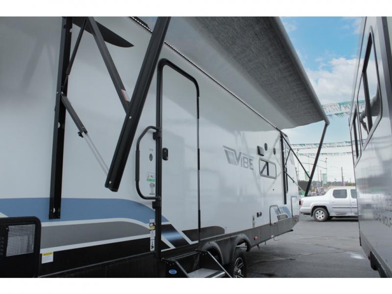 Each Vibe travel trailer by Forest River includes Hyper Lyte construction and a durable laminated "Aluma Frame" for years of use. You will also find an outside shower, a 200-watt roof mounted solar panel, and heated tank pads that will help extend your camping season. The Reserve Package has many at-home features you are sure to enjoy, like the decorative window treatments, solid surface countertops, new black chef's appliance package with an air fryer, and more! These models also include cable and satellite prep and a digital TV antenna with a booster so you can stay connected to the outside world if you choose. Make the easy choice and choose a Vibe travel trailer today!