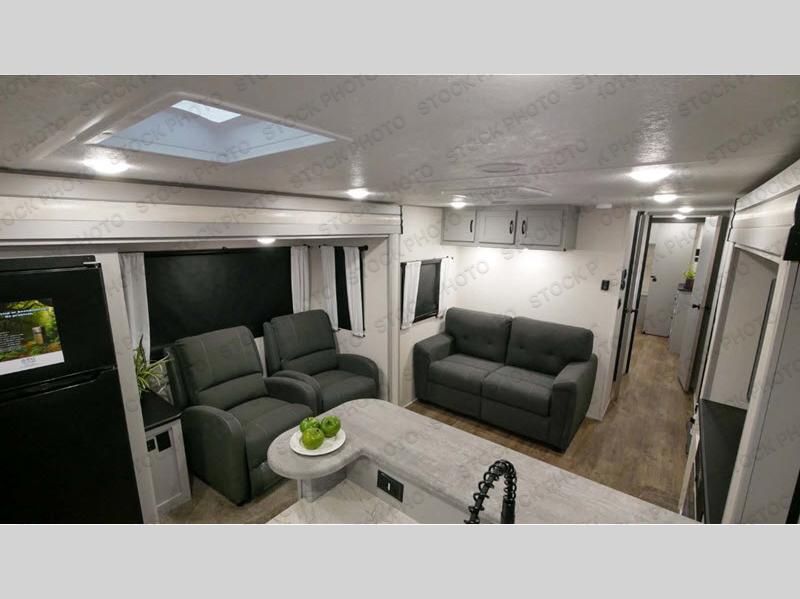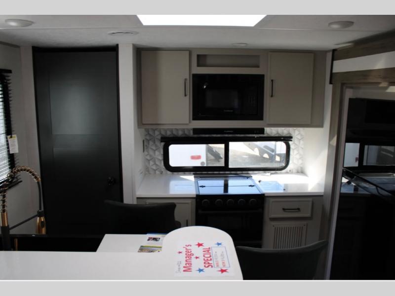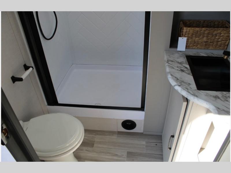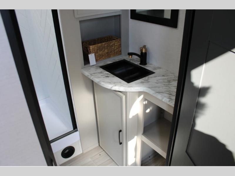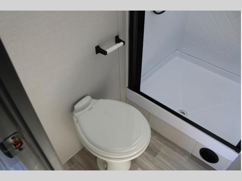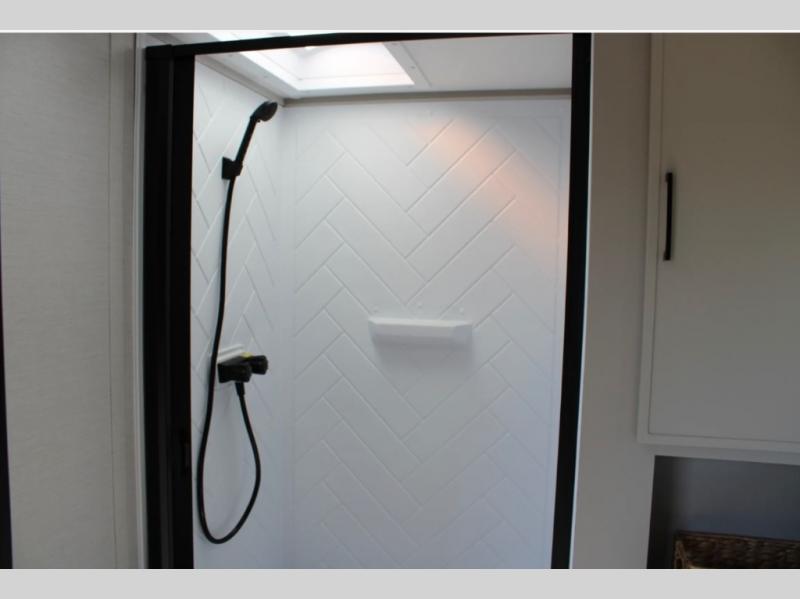 Each Vibe travel trailer by Forest River includes Hyper Lyte construction and a durable laminated "Aluma Frame" for years of use. You will also find an outside shower, a 200-watt roof mounted solar panel, and heated tank pads that will help extend your camping season. The Reserve Package has many at-home features you are sure to enjoy, like the decorative window treatments, solid surface countertops, new black chef's appliance package with an air fryer, and more! These models also include cable and satellite prep and a digital TV antenna with a booster so you can stay connected to the outside world if you choose. Make the easy choice and choose a Vibe travel trailer today!