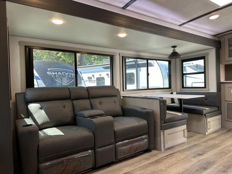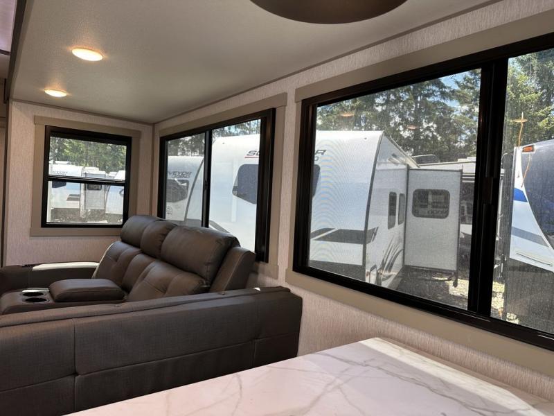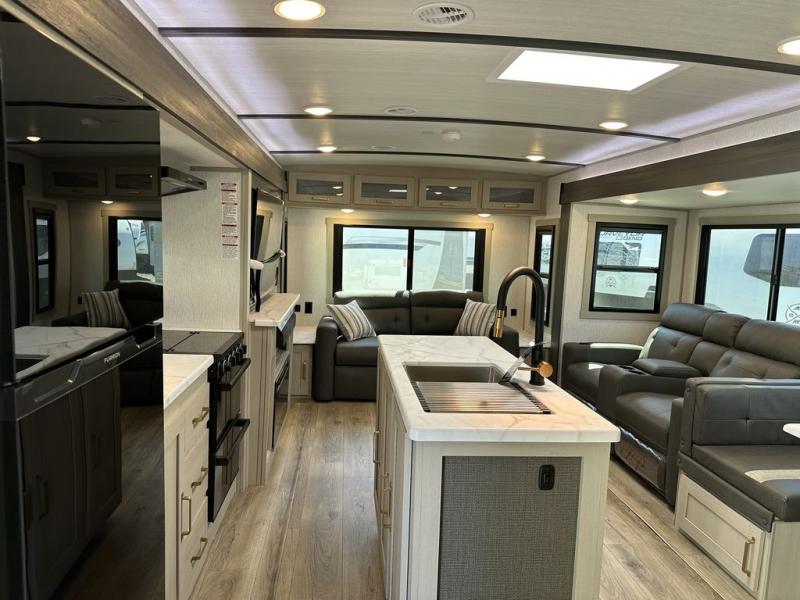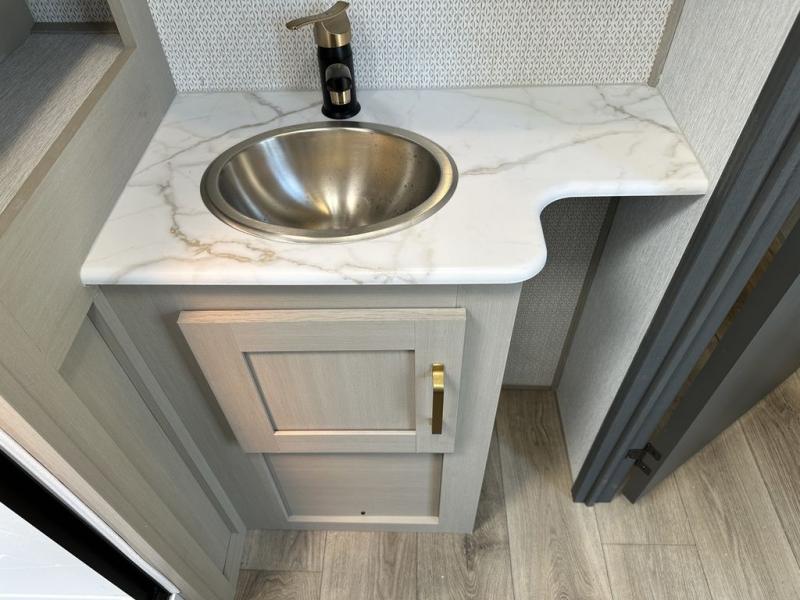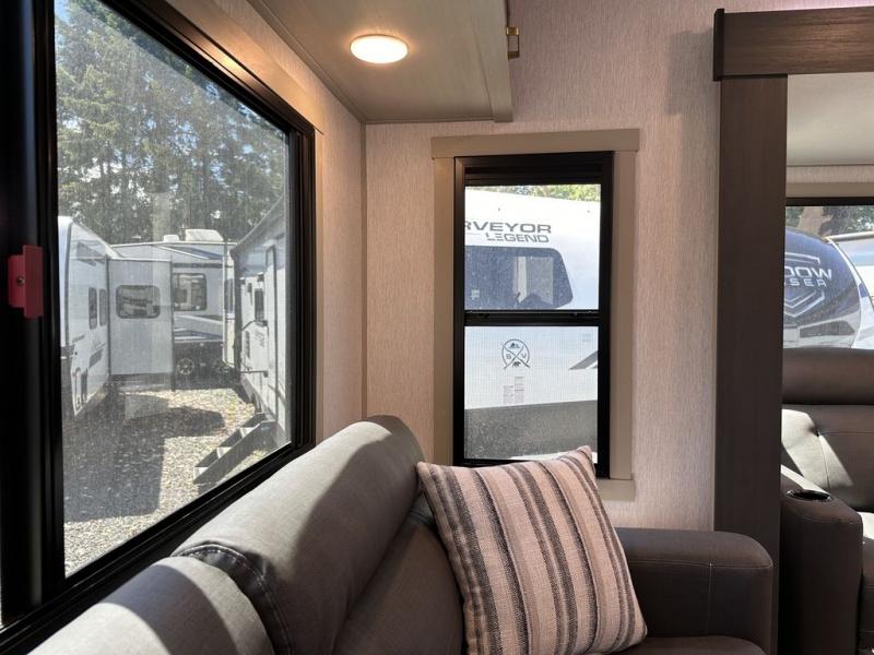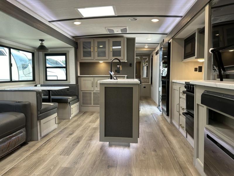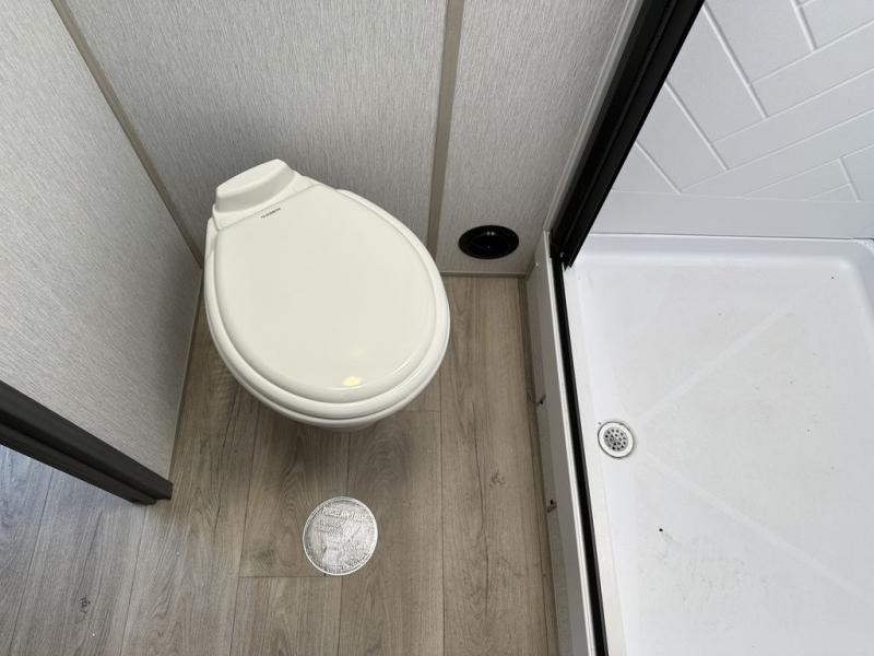 With any Wildwood Heritage Glen travel trailer by Forest River, the quality construction, attention to detail and design along with a bright and welcoming interior allows you to relax in comfort with conveniences while exploring outdoors. Each model includes a WeatherShield one piece fiberglass roof, Goodyear radial tires, and an enclosed underbelly with 12V tank heaters on all holding tanks for added protection. You will appreciate the on-demand tankless water heater, along with the 15K BTU Quite Cool A/C and 50 Amp service with a brace for a second A/C. There is an outside shower with hot and cold water, solar prep, a power stabilizer and tongue jack, plus many more exterior conveniences. Head inside to enjoy Nordic marble countertops throughout, yacht trim ceiling finishes, and full length barreled ceilings for additional head room.