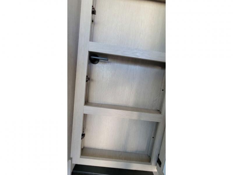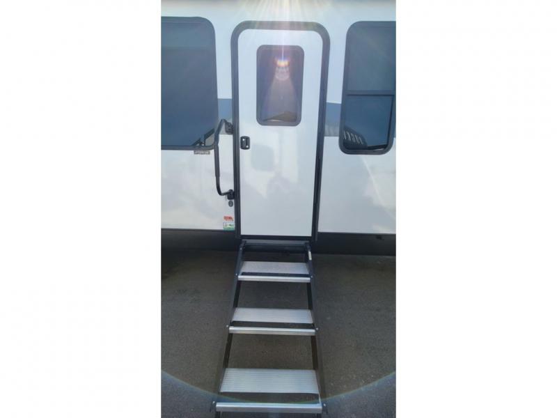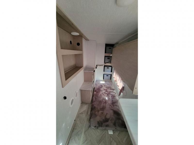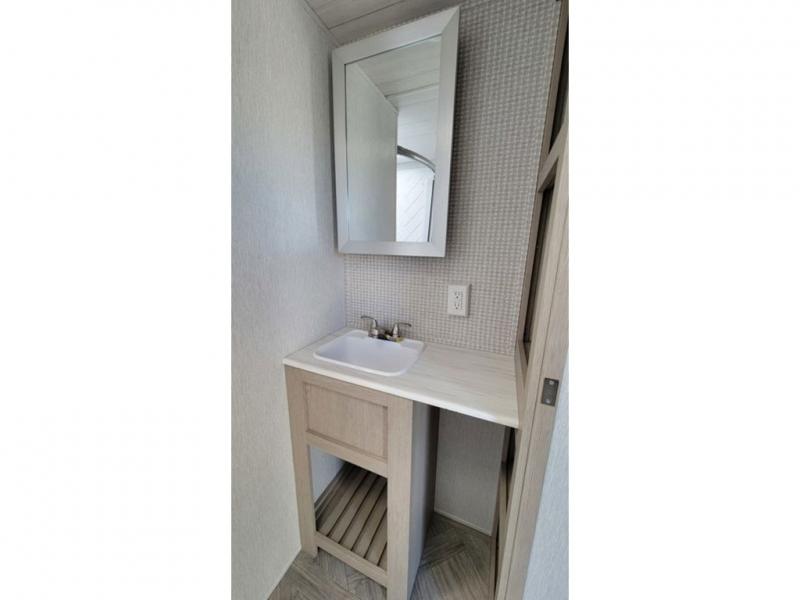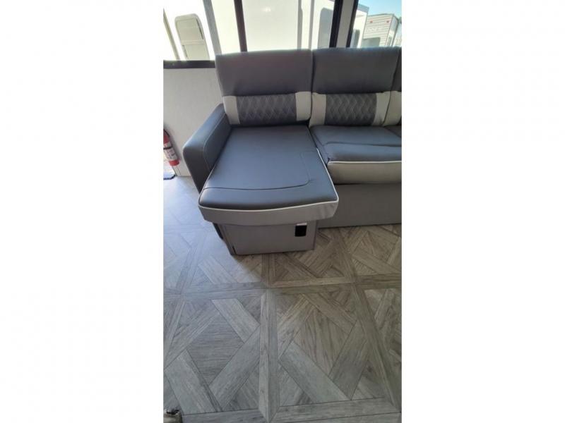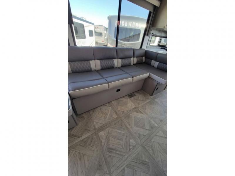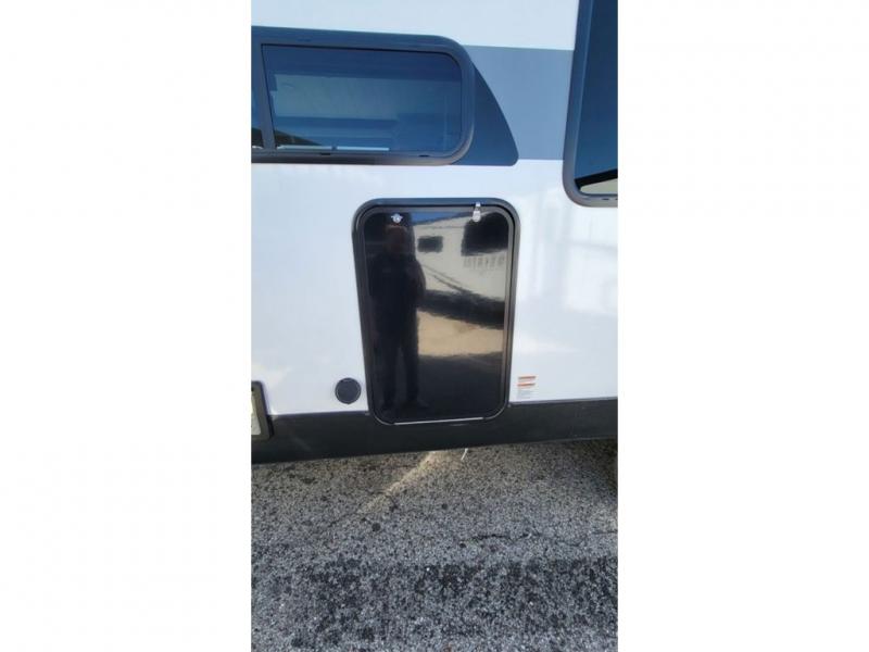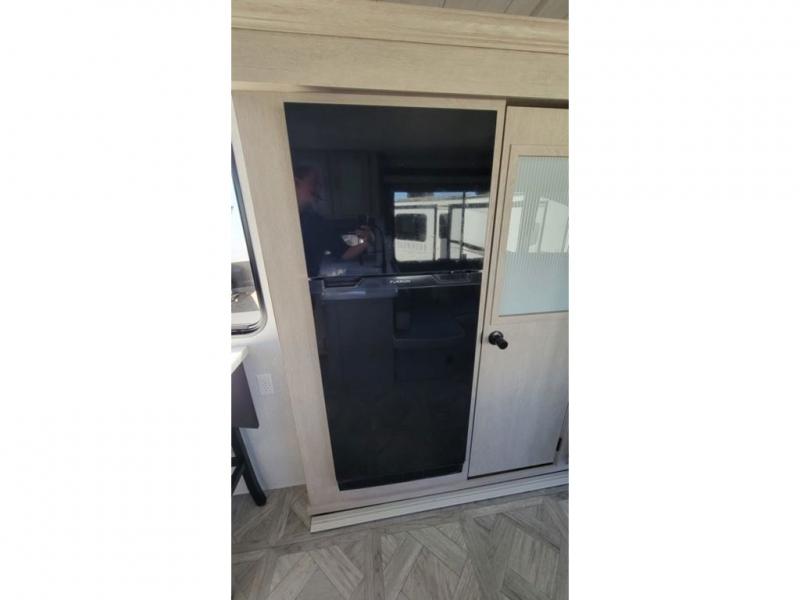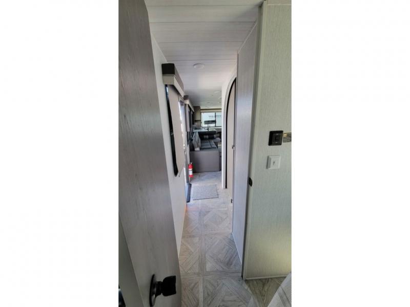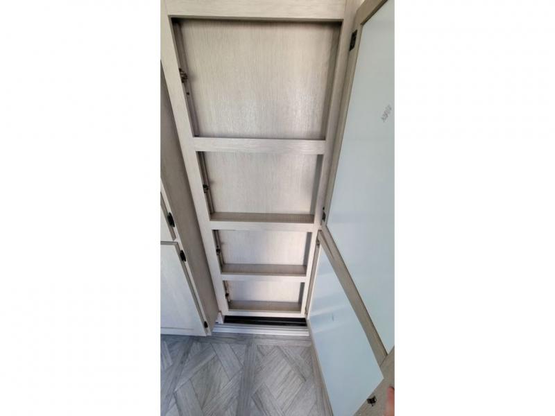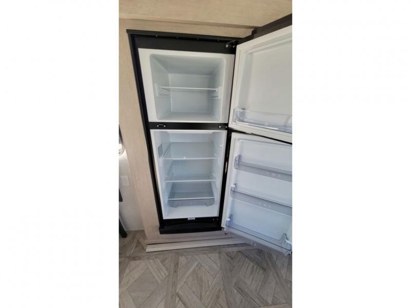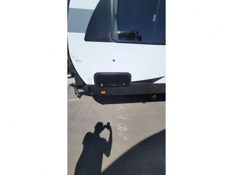 Your family of four or will enjoy this Wildwood View bunk model featuring 105 square feet of window space for unbelievable views of your surroundings. The Versa Slide features a refrigerator, pantry, and entertainment center with a door leading to a bunk space including a 30" x 70" flip-up bunk with a mattress pad below, storage cubbies for your things, and a desk with bar stool for any office work that you may need to do while you travel. All is neatly tucked away within the slide behind an entertainment wall with fireplace opposite the sectional sofa which is great for relaxing and entertaining family and friends indoors. The rear kitchen area offers 18 linear feet of countertop space with four bar stools, plus a three burner range and double sink. Your refrigerator and pantry will hold all of your perishables and dry goods, and those are nearby within the Versa slide. Up front, a private bedroom with Versa-Tilt custom king bed which provides 14-1/2" of additional walking around space, plus you will find a wardrobe that has been prepped for a washer and dryer if you choose to add, as well as dual nightstands beneath wardrobes on either side of the bed. A large pass-through storage compartment offers plenty of storage for your outdoor gear, and if you enjoy outdoor cooking, you might want to add the outside kitchen option as well.