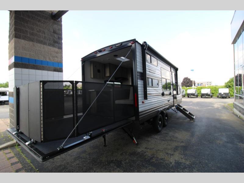 The Forest River Wildwood FSX travel trailer and toy haulers are easy to tow and easy to love, so come take a look! With each model you'll appreciate the 20K BTU furnace and A/C unit to keep you comfortable year around, and the large windows will make the whole unit seem bright and open. The EZ entrance includes an XL folding grab assist handle, and the power awning with LED lights provide an outdoor living space you are sure to love. The lightweight Wildwood FSX travel trailers and toy haulers are your ticket to the great outdoors. Choose yours today!