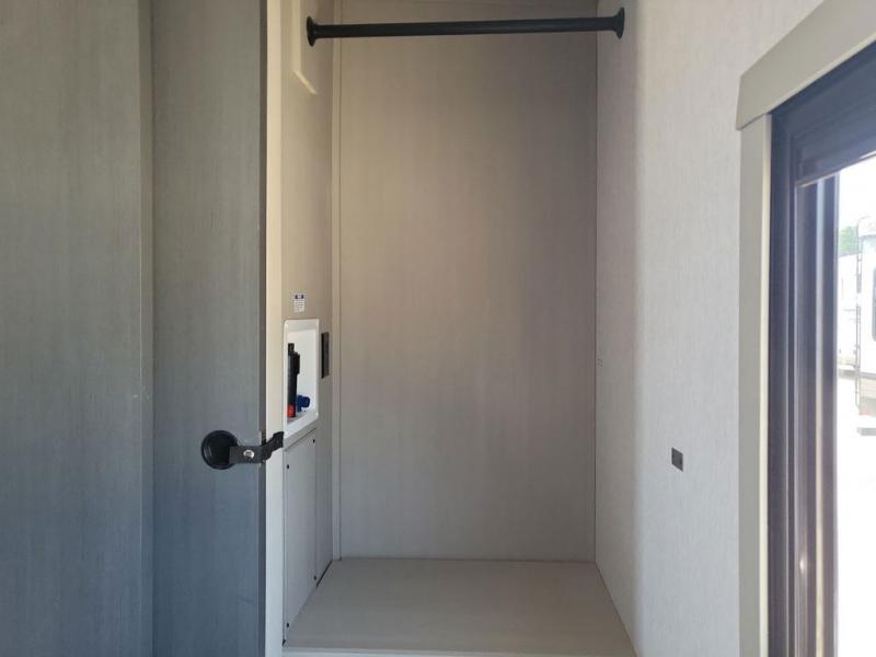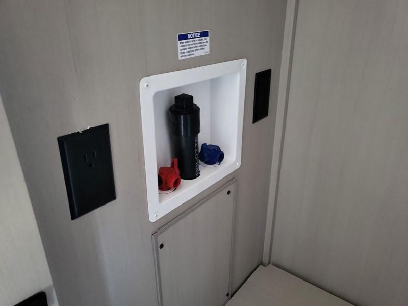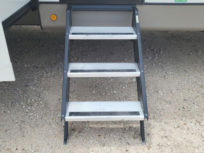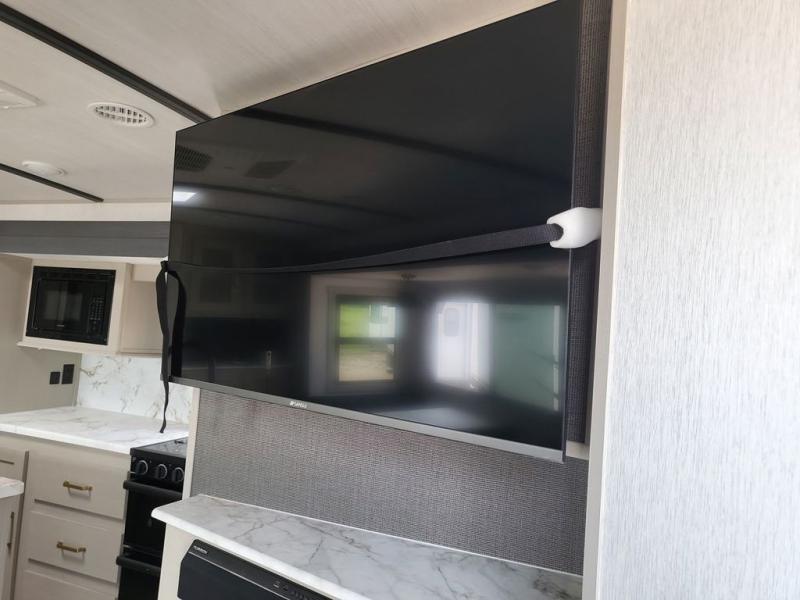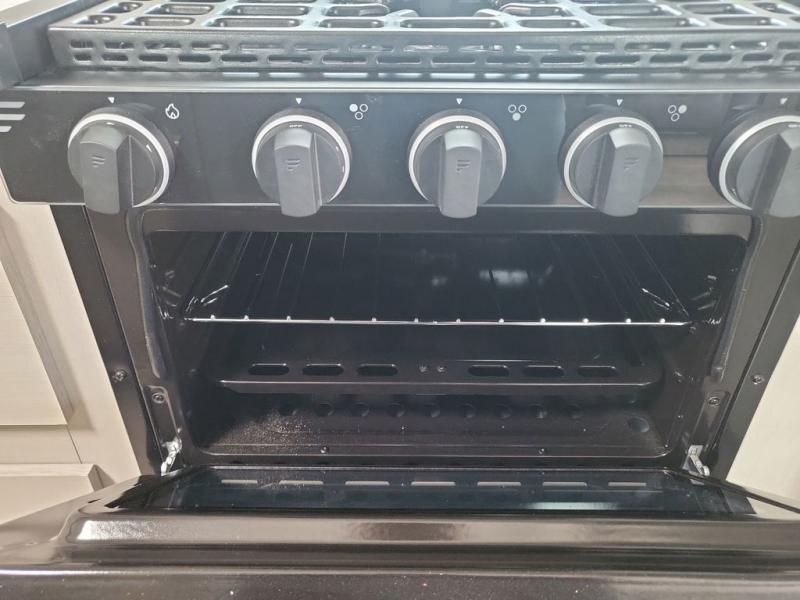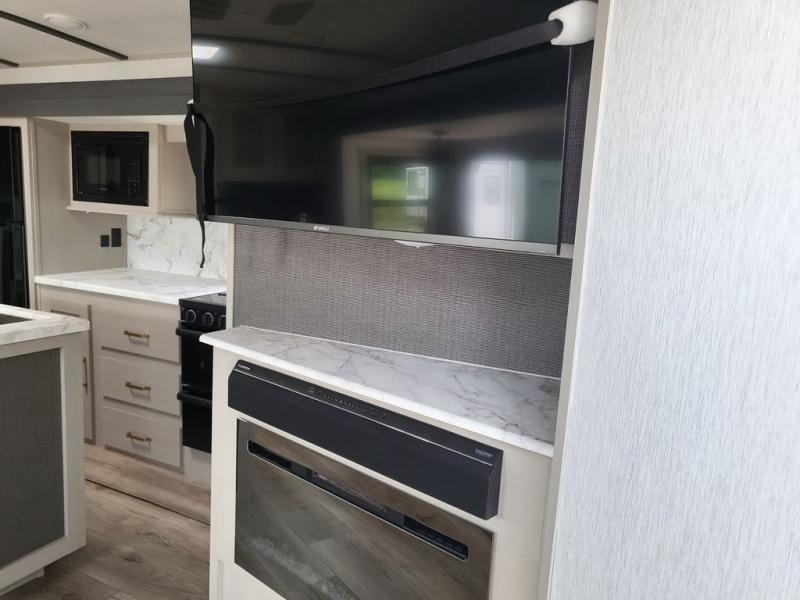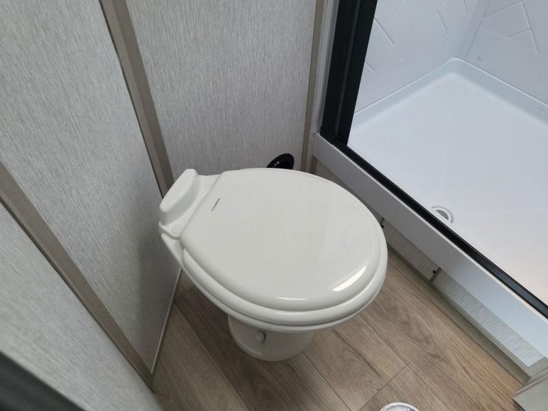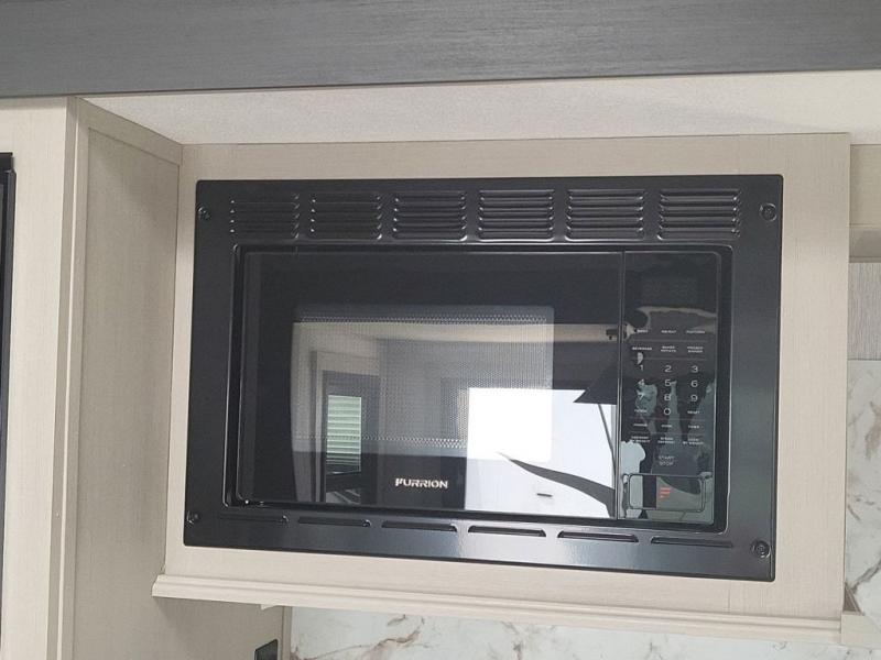 With any Wildwood Heritage Glen travel trailer and fifth wheel by Forest River, the quality construction, attention to detail and design along with a bright and beautiful and durable, and the Saddle colored wood cabinetry with matte black cabinet hardware on the cabinet doors is stylish and beautiful. The heated and enclosed underbelly plus 12V heat pads on all holding tanks allows you to camp anytime of year. More features that provide convenience include the power stabilizer jacks, the extra large pass-through storage, and the central switch center plus the back-up camera prep and roof mounted solar panel prep give you choices. There are many more features included whether you choose a travel trailer or fifth wheel!