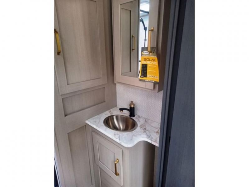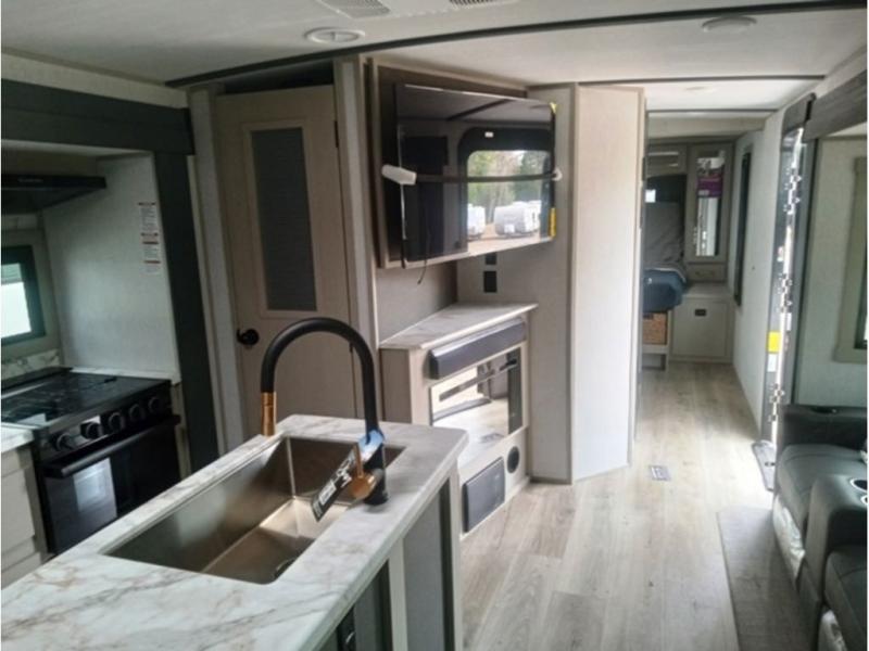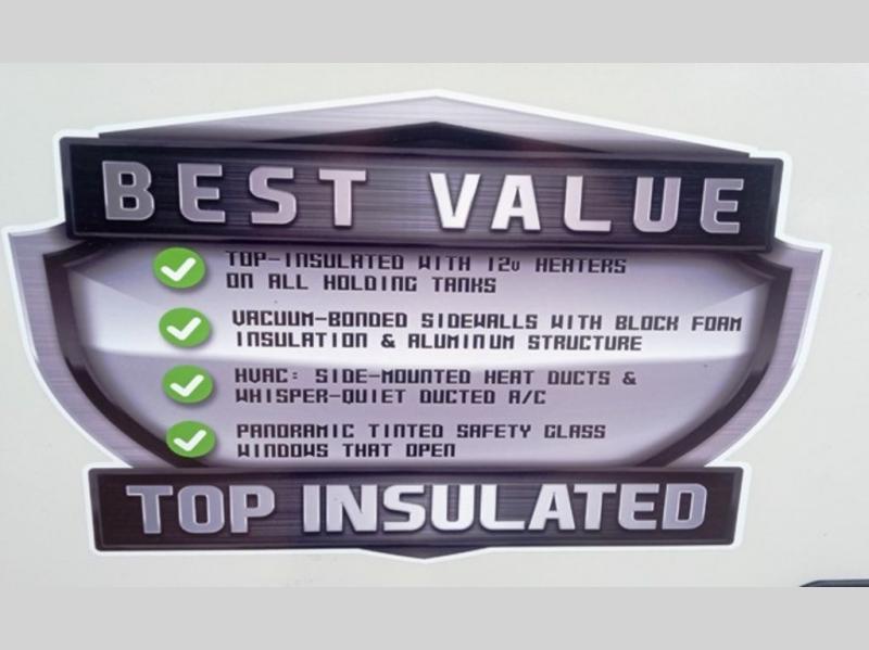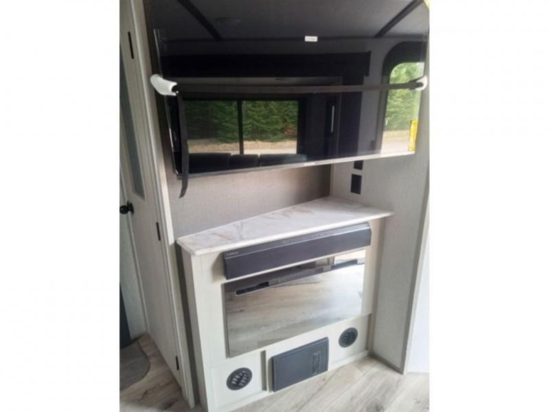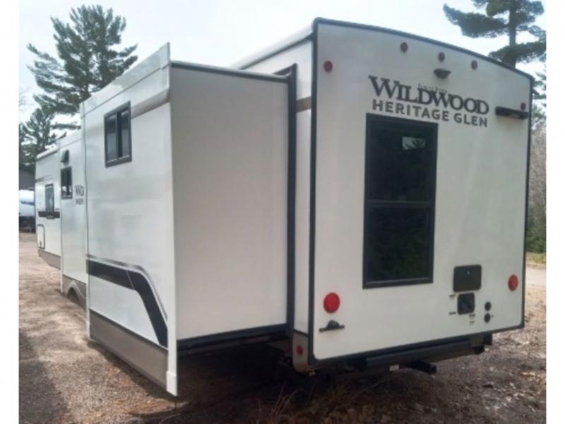 With any Wildwood Heritage Glen travel trailer by Forest River, the quality construction, attention to detail and design along with a bright and welcoming interior allows you to relax in comfort with conveniences while exploring outdoors. Each model includes a WeatherShield one piece fiberglass roof, Goodyear radial tires, and an enclosed underbelly with 12V tank heaters on all holding tanks for added protection. You will appreciate the on-demand tankless water heater, along with the 15K BTU Quite Cool A/C and 50 Amp service with a brace for a second A/C. There is an outside shower with hot and cold water, solar prep, a power stabilizer and tongue jack, plus many more exterior conveniences. Head inside to enjoy Nordic marble countertops throughout, yacht trim ceiling finishes, and full length barreled ceilings for additional head room.