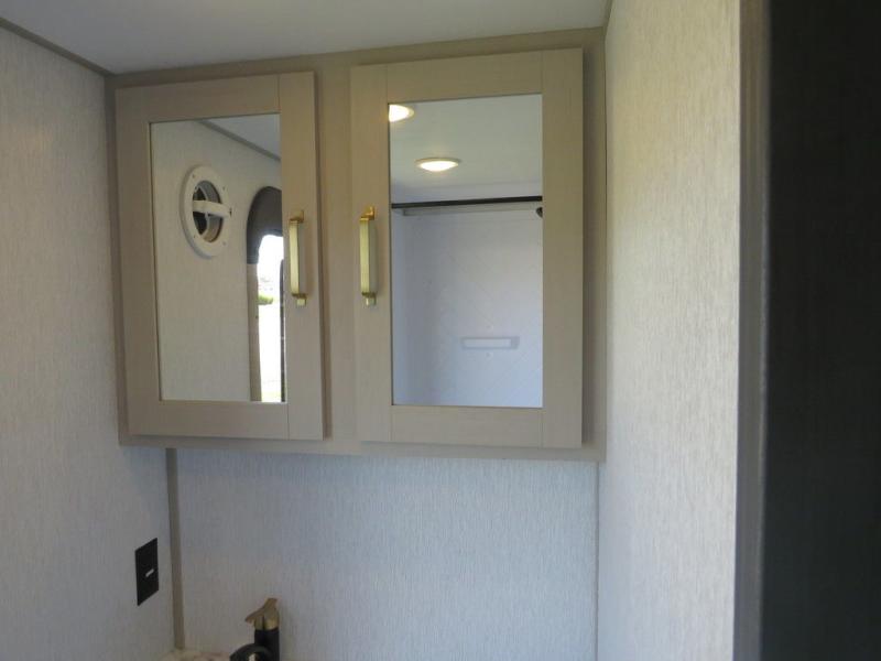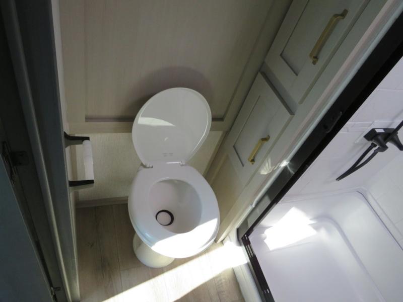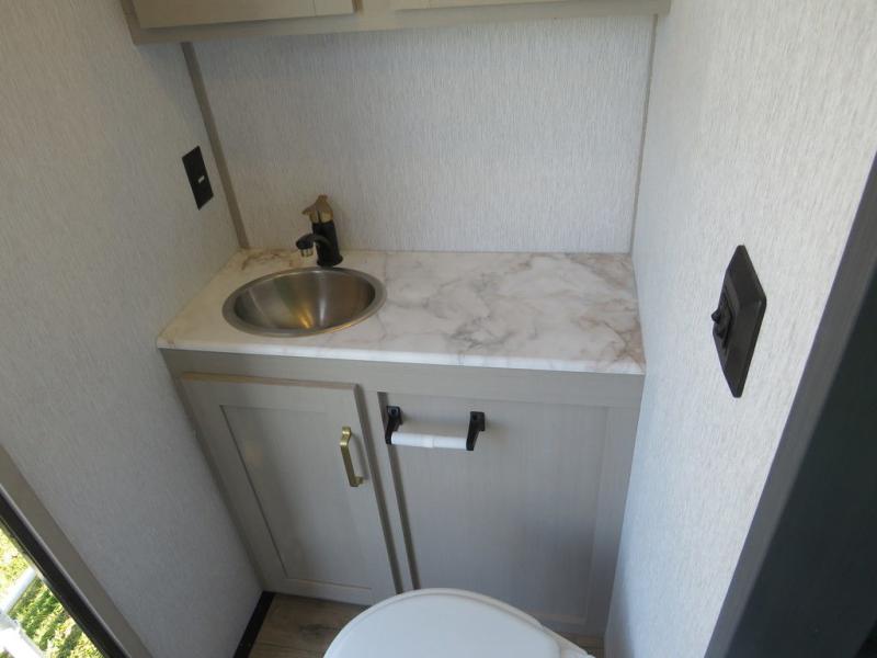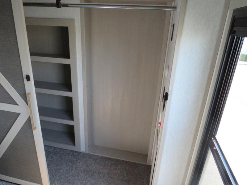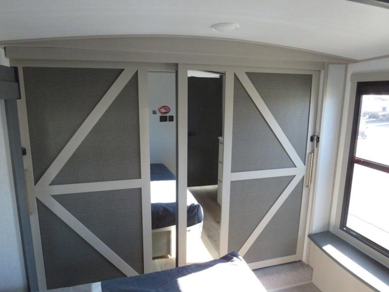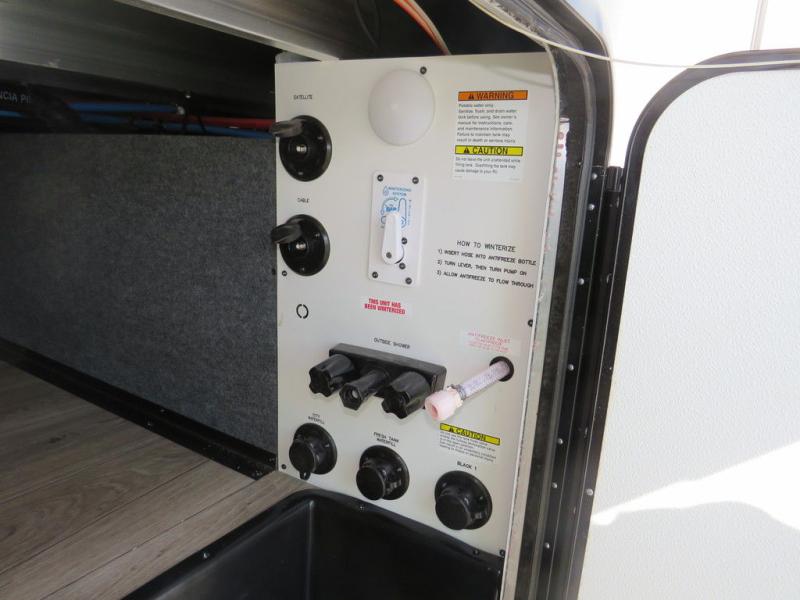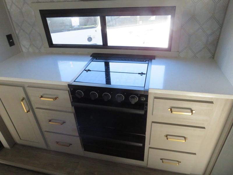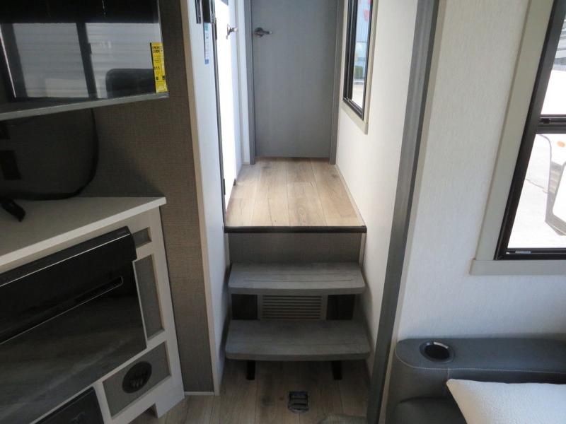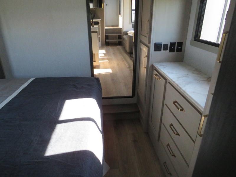 With any Wildwood Heritage Glen fifth wheel by Forest River, the quality construction, attention to detail and design along with a bright and welcoming interior allows you to relax in comfort with conveniences while exploring outdoors. The European Oak colored horizontal plank linoleum flooring is unique, beautiful and durable, and there are gold-accented faucets with stainless steel sinks in the bathrooms for added luxury. The Accessibelly underbelly with 12V tank heaters will help protect your unit from the elements, and the power stabilizer jacks and landing gear will make set-up a breeze. More features that provide convenience include the high-end solid surface countertops, an RV Airflow System that provides at least 25% better airflow, an automotive grade painted front cap with a gel coat, and solar prep for off-grid capabilities.