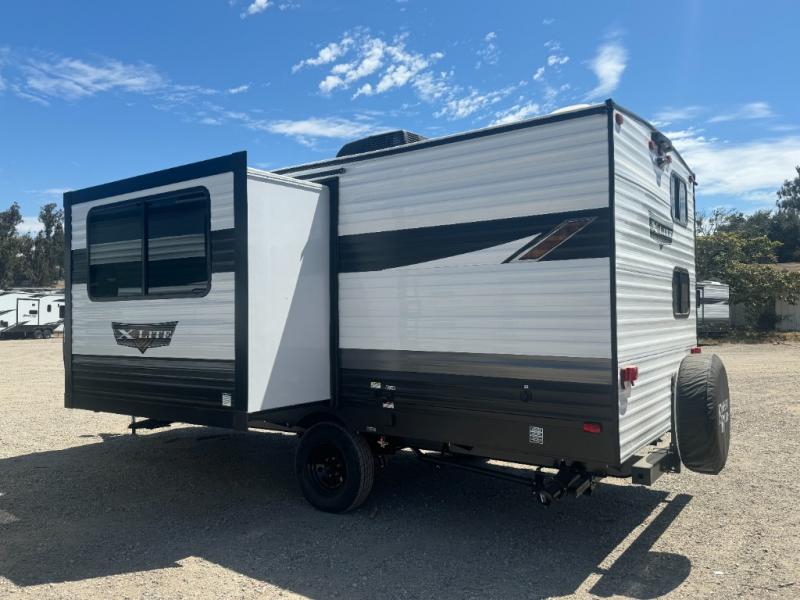 Take all of your family vacations in this travel trailer! The front Murphy bed offers versatility with a 56" sofa to sit on during the day and a 60" x 74" RV queen bed to lay on at night, plus there are end tables and wardrobes on either side for your items. The kiddos or your gests can sleep on the double-size bunks and will appreciate how close the rear corner bathroom is to them at night. You can prepare your best home cooked meals either indoors with the two burner cooktop or breathe in some fresh air while you cook at the outside camp kitchen and stay protected by the 15' awning. The Versa U-shaped dinette slide is not only great for eating meals and playing games, but also for transforming into an extra sleeping space too!