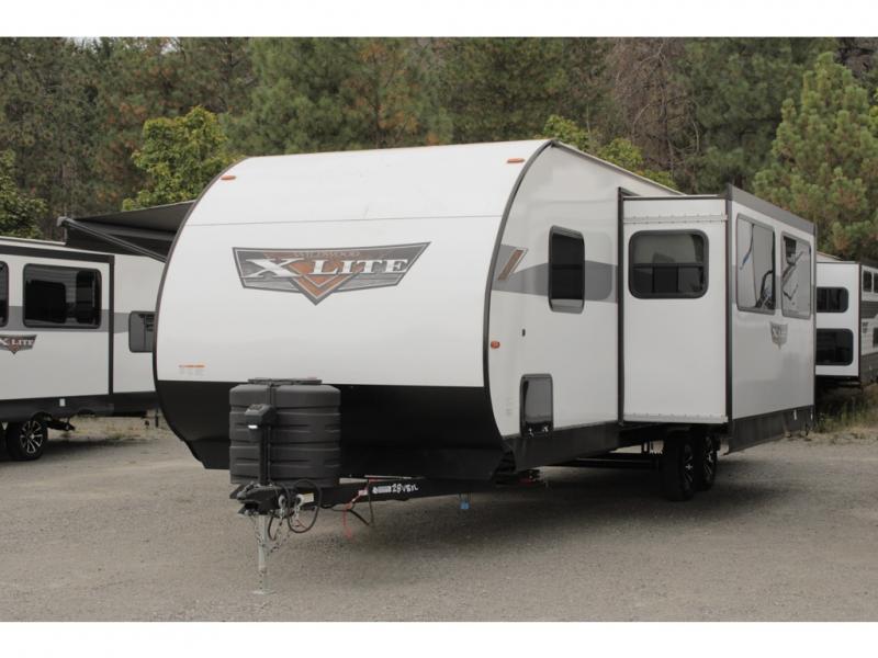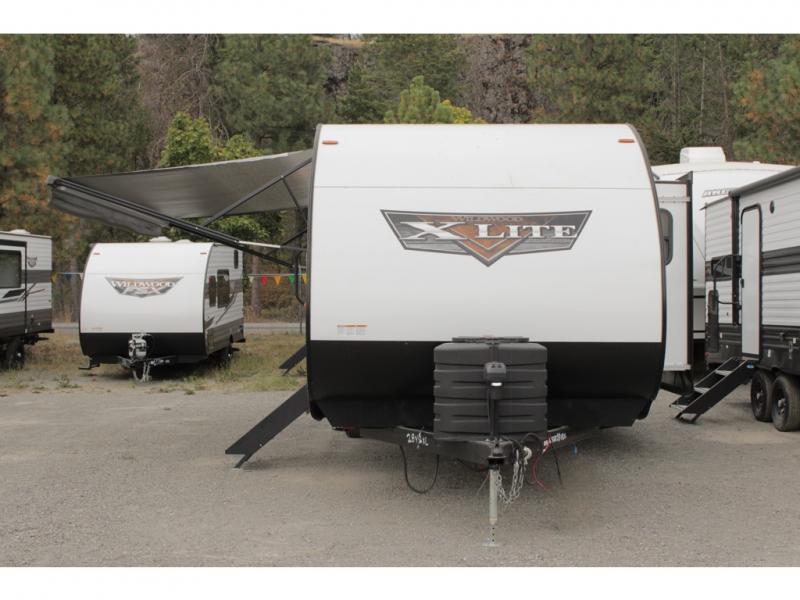 The Forest River Wildwood X-Lite travel trailers and toy haulers are comfortable enough to make any destination feel like home! The Wildwood X-Lite has a SolidStep double step at the main entry door so that you can enter your trailer confidently, and the true stabilizer jacks with JT's Strong Arm will ensure that your trailer remains secure once it's set up. Within the reliable construction, you will find excellent interior amenities, like an updated appliance package, a Bluetooth stereo, seamless countertops, USB ports, and a stainless steel roll-up sink cover. The Wildwood X-Lite also comes with a Stow N Go storage so that you can make the most of every adventure by bringing along the essentials.