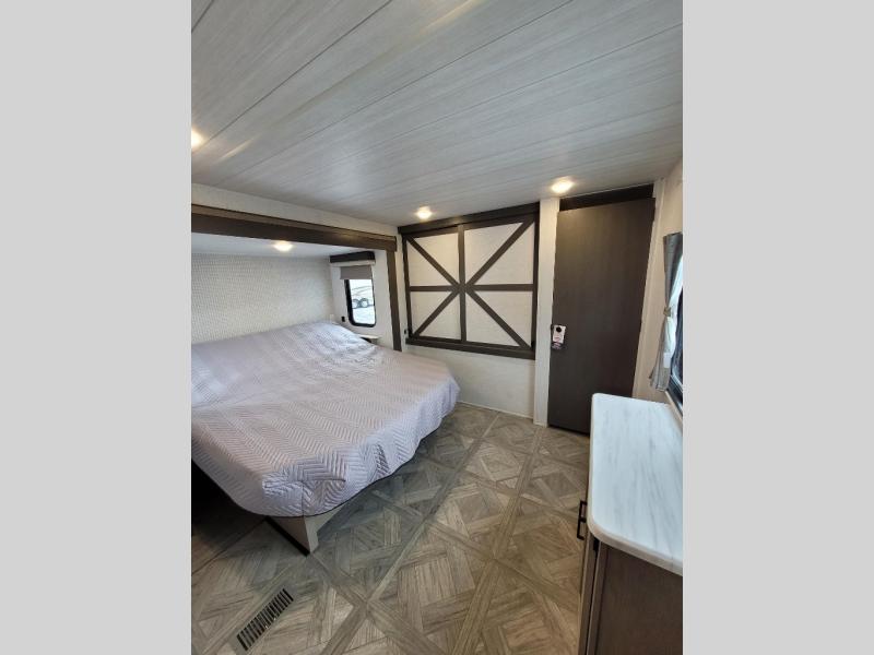 Enjoy years and years of memories with any one of these Forest River Wildwood travel trailers! They are built with a Dicor PVC roof membrane, a powder coated I-beam frame, and an aerodynamic front radius profile for an easier tow. The triple seal slide out system prevents water from seeping inside and keeps it outside where it belongs. The Best In Class Value Package includes upgraded designer furniture, seamless countertops with no T-mold, and two zone residential soundbars with FM, Bluetooth, HDMI and USB. You will also appreciate the heated and enclosed Accessi-Belly with removable underbelly panels, the power tongue jack with an LED light, and the designated CPAP storage. Some new upgraded features include: an upgraded slide-out fascia, a Versa-Tilt bed, an upgraded shower head, and a 60K BTU tankless water heater, and so much more!