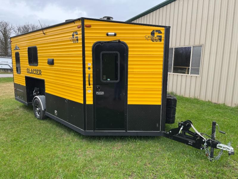 Each ice house by Glacier Ice House offers black diamond plate wheel wells and front nose, a reflective graphics package, and LED ice hole lights. You will also enjoy the forced-air furnace, dual-pane windows, LED interior and exterior lighting, and the cedar interior. Choose the model that fits your fishing or camping needs, and start having fun today!