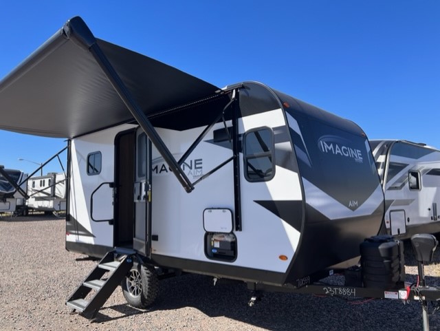 Aim for new destinations in one of these Grand Design Imagine AIM travel trailers! They are constructed to a superior standard with the 4-Seasons Protection Package that features a heated and enclosed underbelly with suspended tanks, a moisture barrier floor enclosure, a double insulated roof and front wall, and more. There is backup camera prep outside, along with a universal docking station, a power tongue jack, and durable Tuff-Ply pass-thru flooring for your camp gear. You are sure to feel at home with residential cabinetry, premium window treatments, residential countertops, and a spacious walk-in shower to name a few comforts. The on-demand tankless water heater is a feature you won't want to camp without and the hi-definition LED TV will ensure you'll never go bored on rainy days. Each model also comes with four AIM packages; the Peace of Mind Package, The Ultimate Power Package, The 4-Season Protection Package, and the Solar Package!