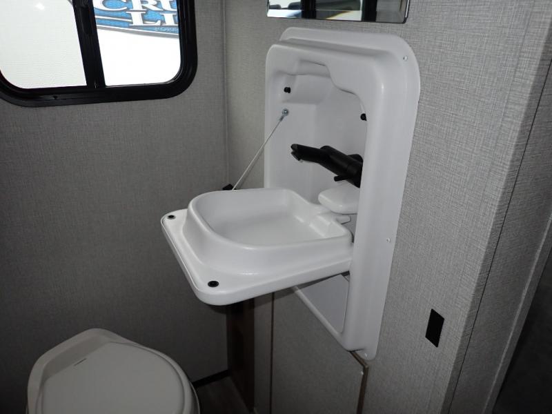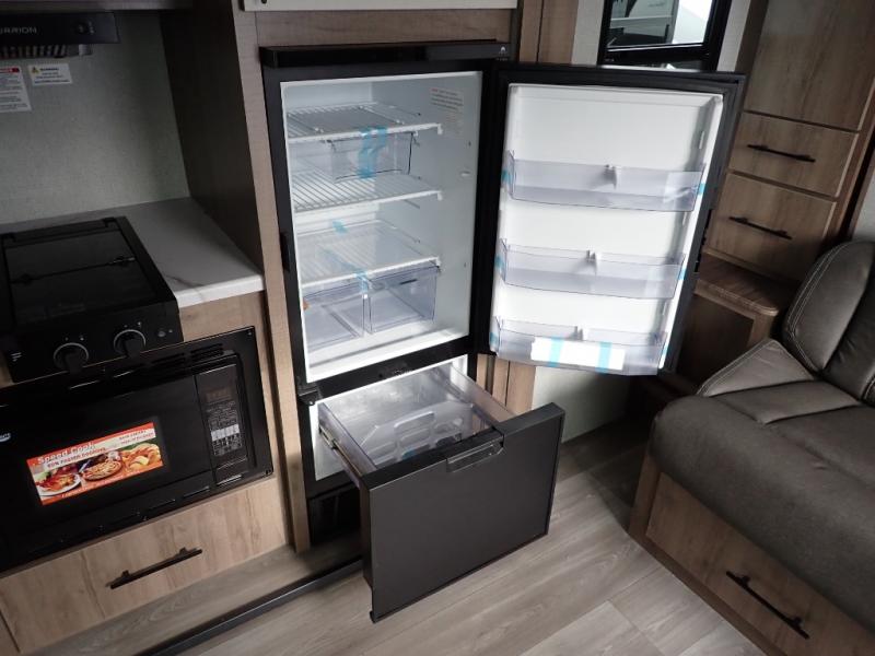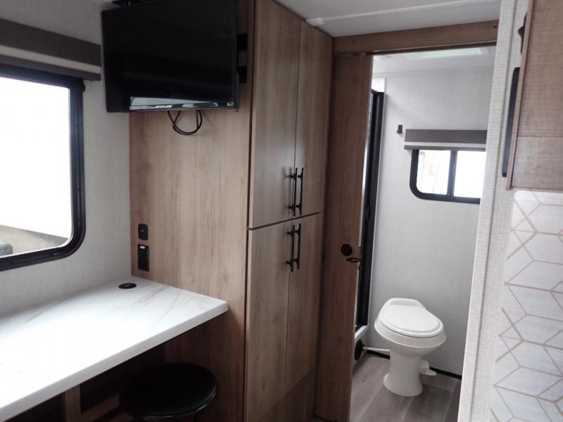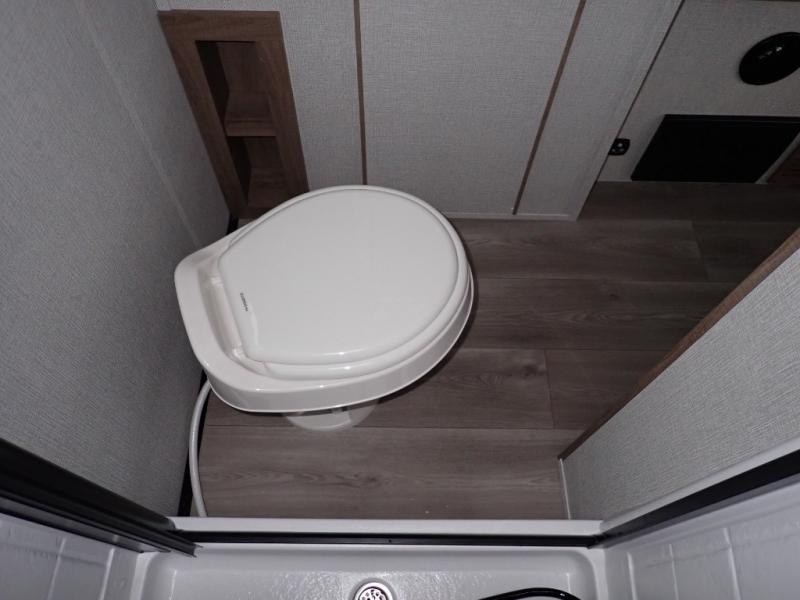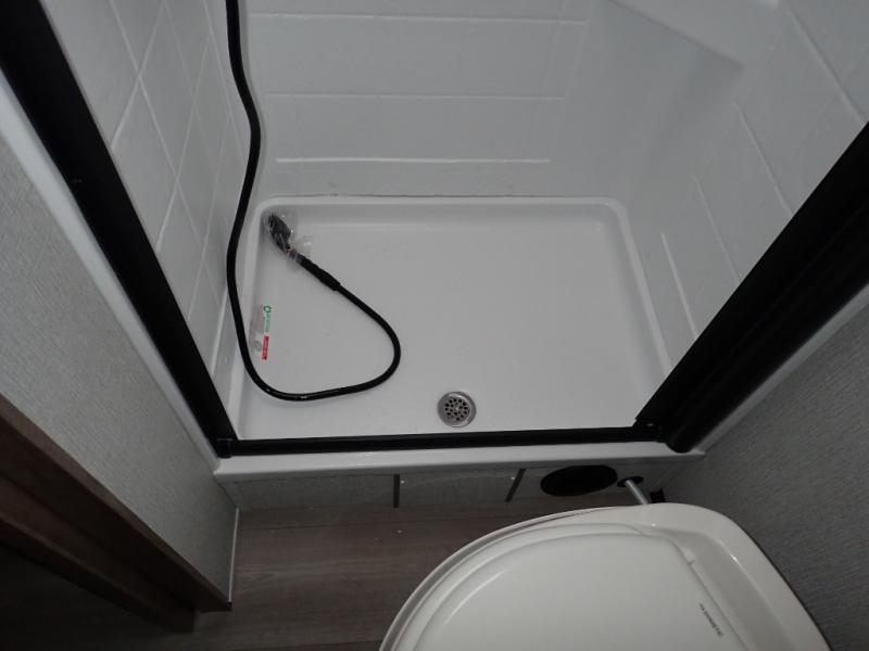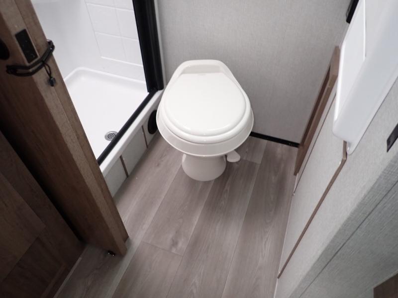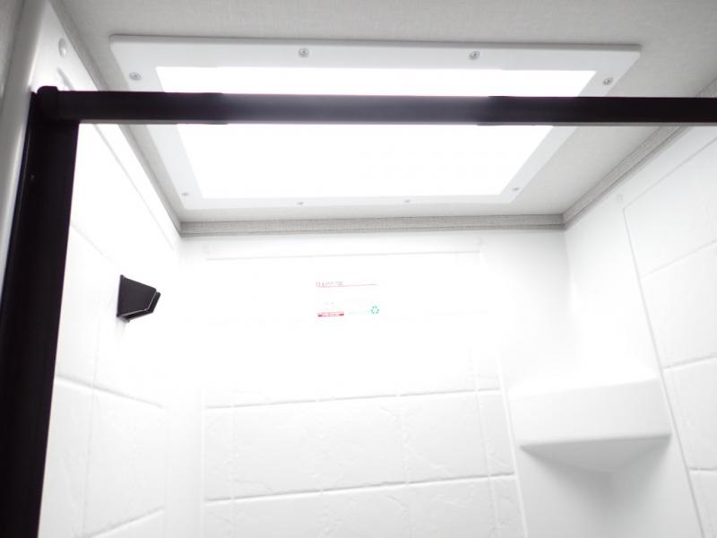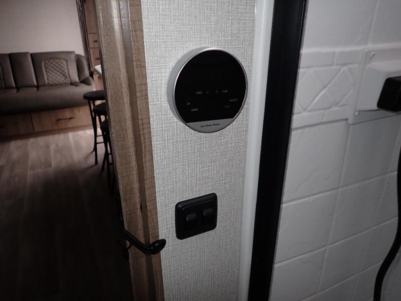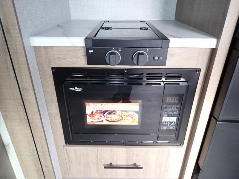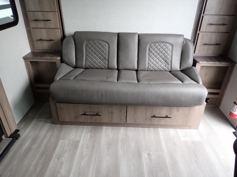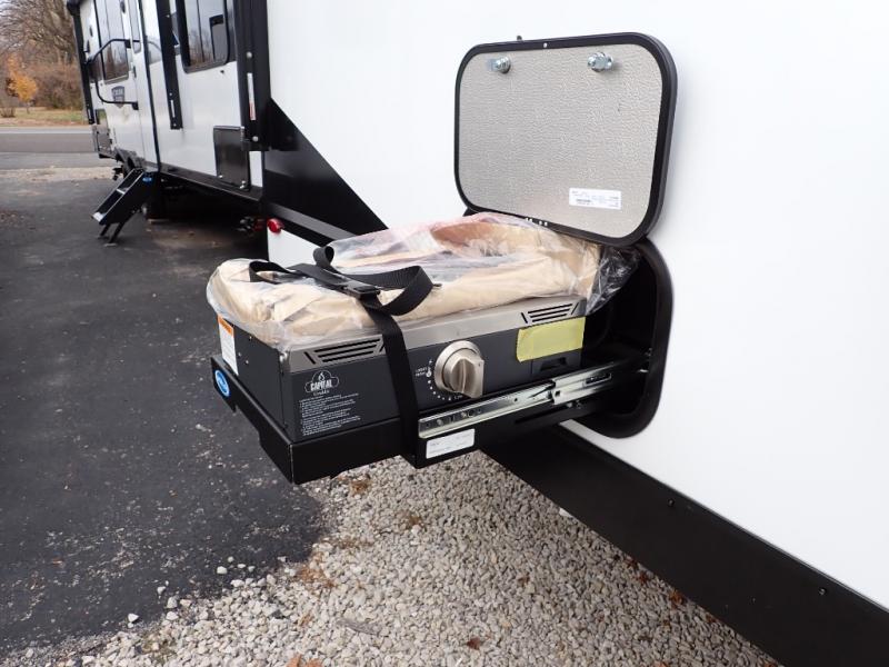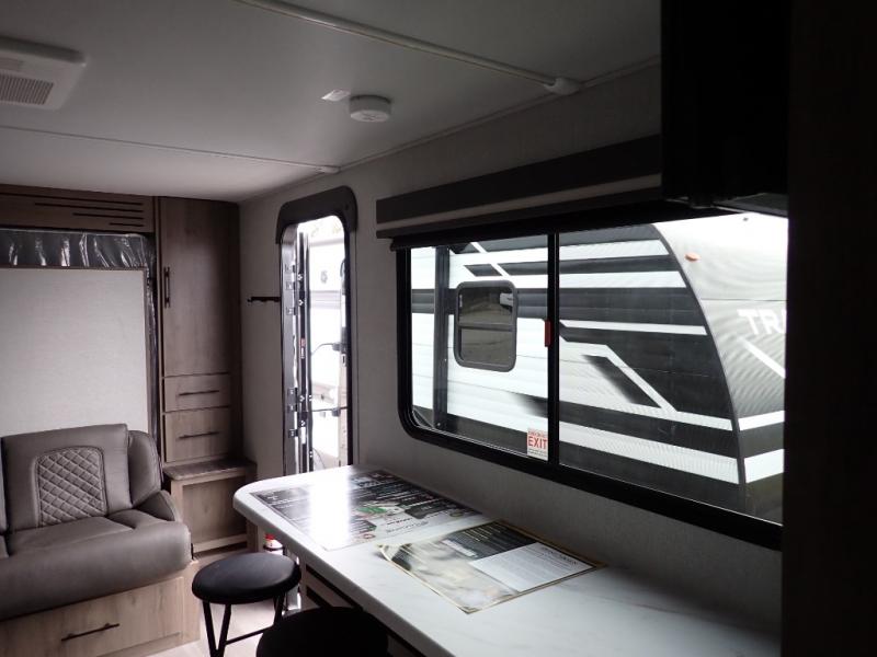 You will feel right at home in this travel trailer! Everyone will have a comfortable place to sleep between the front queen Murphy bed which can transform into a sofa and the 32" x 72" bunk beds. After you have prepared a delicious meal on the two burner cooktop or outside griddle, you can enjoy it at the bar tabletop dinette with four stools for seating. The full bathroom has a walk-in shower with a skylight to let in natural lighting and a flip-up sink to save on space!