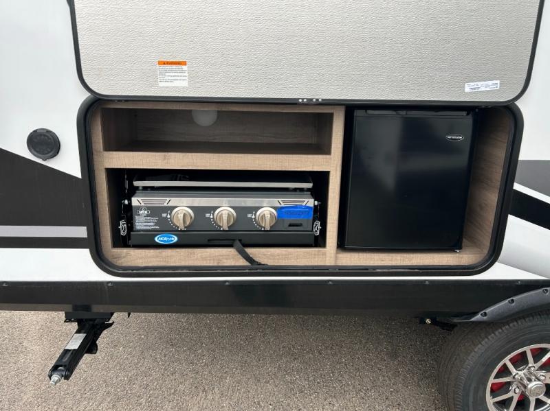 Can you think of anything better than a weekend in this Imagine XLS travel trailer! You will never miss home when you see all of the amenities included on this trailer. There is a full bathroom for easy morning routines, a set of double-size bunks with privacy curtains for compact sleeping, shoe storage under the booth dinette, and a full kitchen with all of the appliances needed for filling meals. There is also a privacy curtain in the front that sections off the queen Murphy bed. In addition to all of that, you'll also find an outdoor griddle that you can use when the weather is nice. The unobstructed pass-through storage will be able to store your fishing poles and sports equipment while you travel.