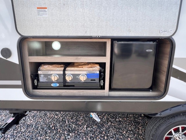 Can you think of anything better than a weekend in this Imagine XLS travel trailer! You will never miss home when you see all of the amenities included on this trailer. There is a full bathroom for easy morning routines, a set of double-size bunks with privacy curtains for compact sleeping, a booth dinette for meal times, and a full kitchen with all of the appliances needed for filling meals. There is also a privacy curtain in the front that sections off the queen Murphy bed. In addition to all of that, you'll also find an outdoor griddle that you can use when the weather is nice. The unobstructed pass-through storage will be able to store your fishing poles and sports equipment while you travel.