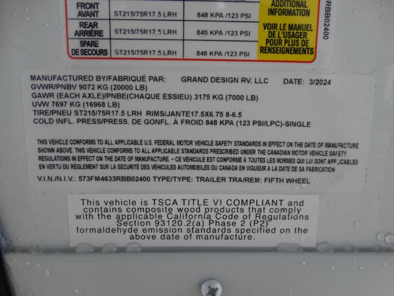 New 2024 Grand Design Momentum 397THS Toy Hauler Fifth Wheel