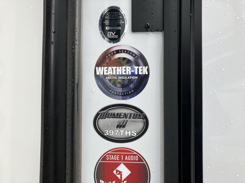 The Momentum fifth wheel toy haulers by Grand Design are built for four seasons of travel with your off-road toys and include luxurious accommodations throughout for extreme living! Each is constructed to a superior standard with the thermal roof design, the full-laminated walls, and the triple insulated garage floor. The MORryde CRE3000 suspension system and rubber pin box, plus the upgraded axle hangers provide the performance and smooth towing you desire, while the interior offers luxury such as color changing LED accent lighting, raised panel hardwood cabinet doors with hidden hinges, and a central vacuum system. Each toy hauler also includes four packages, including the Garage Package with Tuff-Ply gas and oil resistant flooring, the Weather-Tek Package with a Stealth AC System, and the Interior Luxury Package with solid surface countertops!