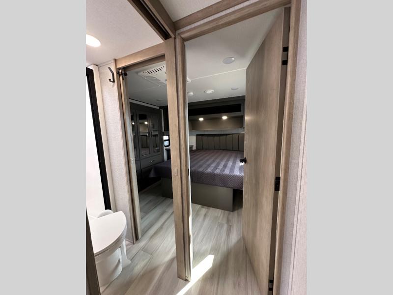 Are you looking for adventure and fun? The Momentum G-Class toy hauler by Grand Design will help you find it! You can explore during any season you choose with the Insulation Package that includes a heated and enclosed underbelly with suspended tanks, a high-capacity furnace, a moisture barrier floor enclosure, and cabinet-mounted heat ducts. Each model includes a fuel station with an interior and exterior gauge, a dovetail rear rend, and 2,500-LB tie-downs anchored into the chassis. Throughout the Momentum G-Class interior, you'll enjoy many comfortable features like large panoramic windows, a shower skylight, USB chargers in the bedroom, and residential cabinetry.