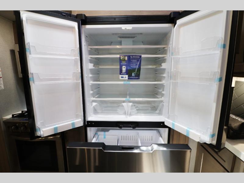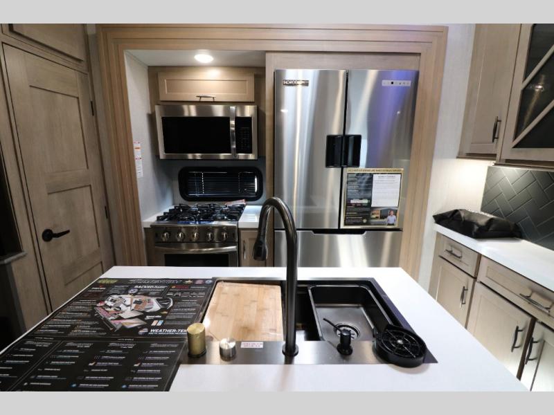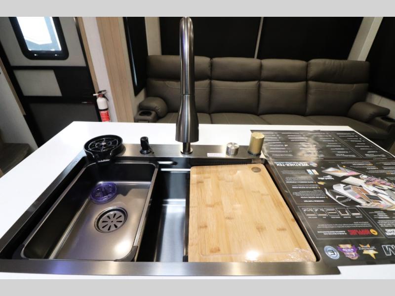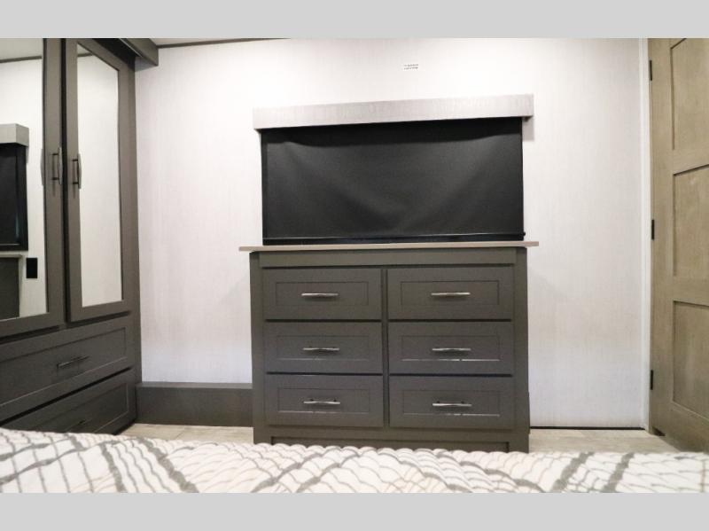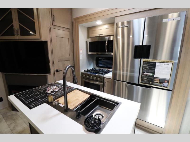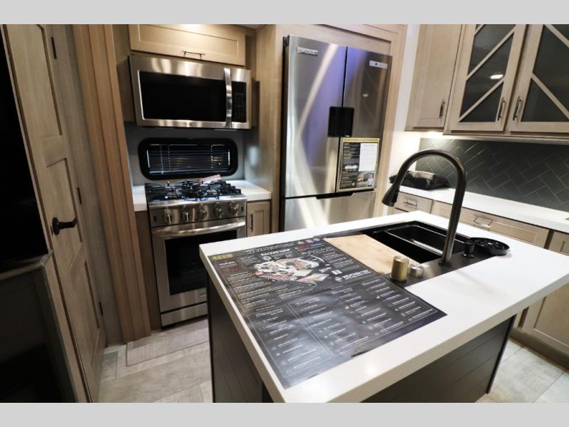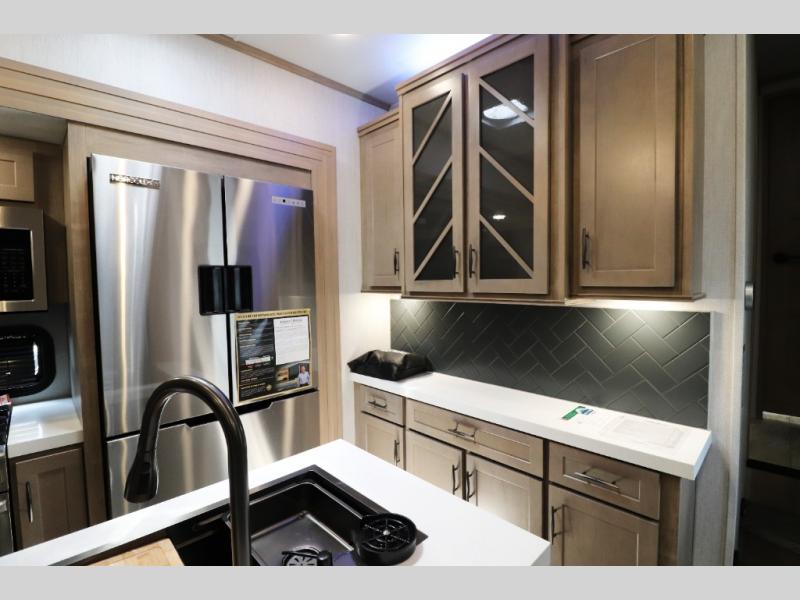 - Outdoor Living: Exterior entertainment center, electric awnings with LED lights, and outdoor kitchen options.