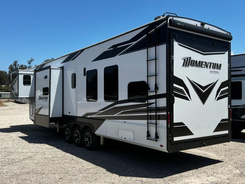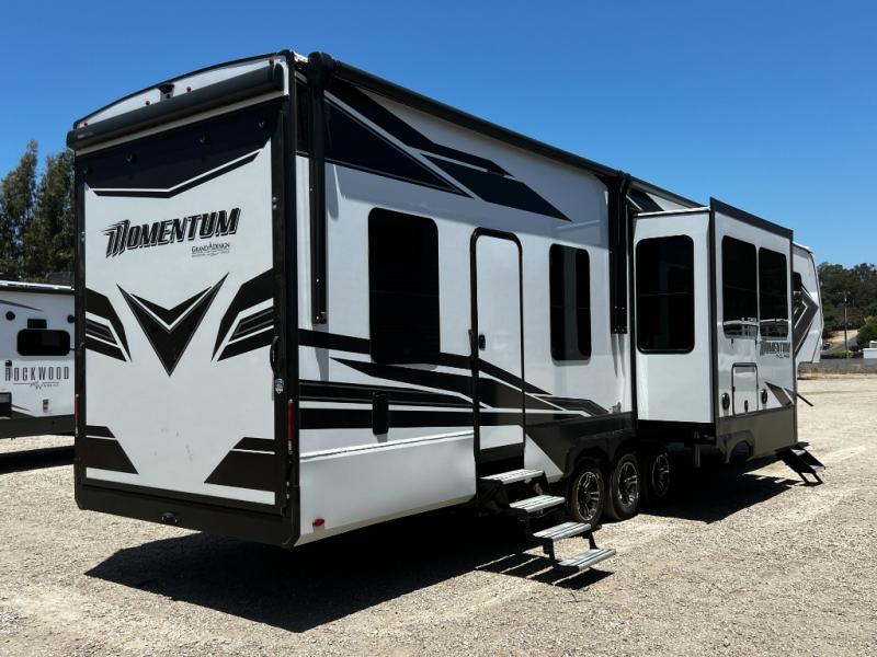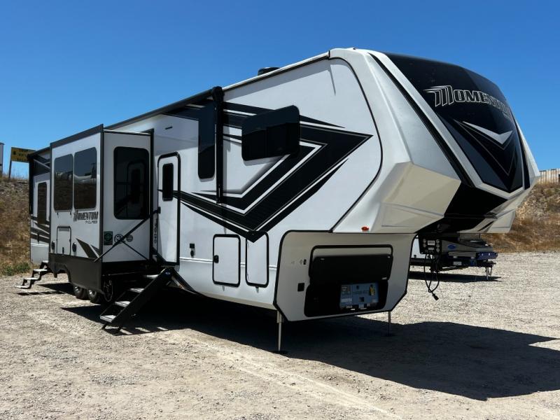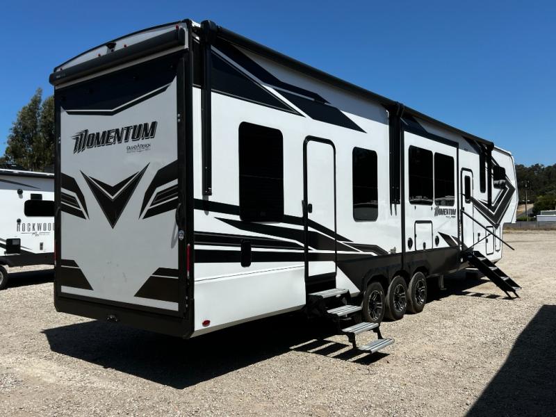 With any Momentum M-Class toy hauler by Grand Design, you will enjoy luxury at every turn! They have been constructed to a superior standard with a thermal roof design, triple insulated main floor and garage floor, and a Rail-Tite underbelly seal that will allow you to camp in all elements. Each model also features an 8' 5" wide body chassis with a wide rail design, no wheel wheels, and a dovetail entry for easier loading. The Stealth A/C system provides maximum cooling power, and the CRE3000 suspension system means you can enjoy a smooth tow each time. You will love the luxurious interior with a professional grade stainless steel cooktop, interior color changing LED accent lighting, a fiberglass shower with a glass door, and solid surface countertops.