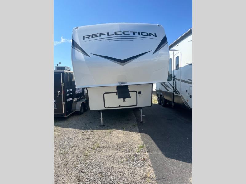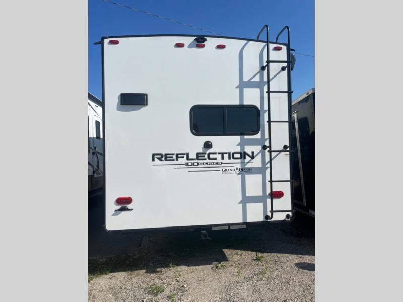 Each Reflection 100 Series fifth wheel by Grand Design is affordable and packed with luxury for unforgettable camping memories! The MorRyde CRE3000 suspension system and Goodyear Endurance tires will provide smooth towing from home to campground. And the solar package with a 180W solar panel, 60 Amp charge controller and 12V refrigerator will allow you to camp for longer periods of time and in more locations! A heated and enclosed underbelly with circulating heat is included in the Arctic 4-Seasons Protection Package, along with a double insulated roof and front cap, and thermofoil insulation under the holding tanks so you can camp all year long if you choose. You will appreciate having an on-demand water heater for hot showers after exploring, and the universal all-in-one docking station will let you monitor your RVs tanks levels and functions with ease. These models also include many luxurious interior features, such as premium Congoleum flooring, pleated shades, residential cabinetry, and matte black fixtures and hardware. Don't let the Reflection 100 Series fifth wheels pass you by!