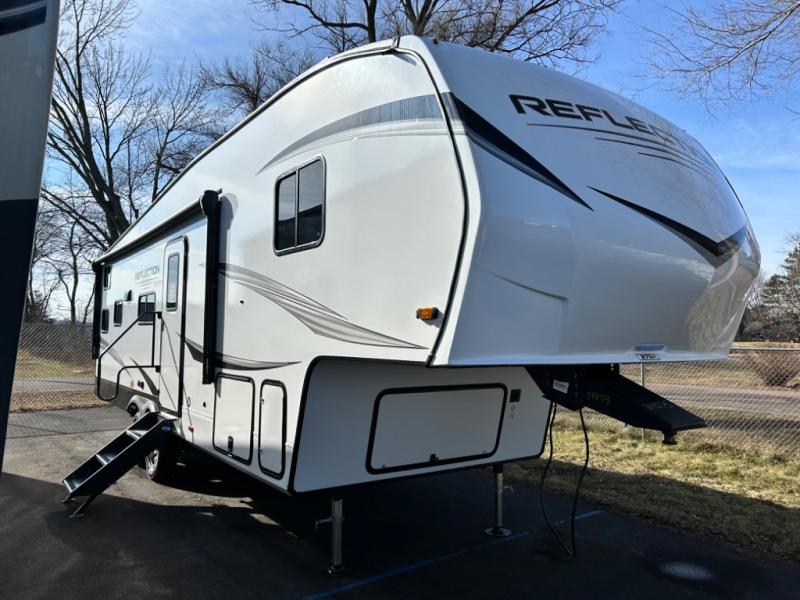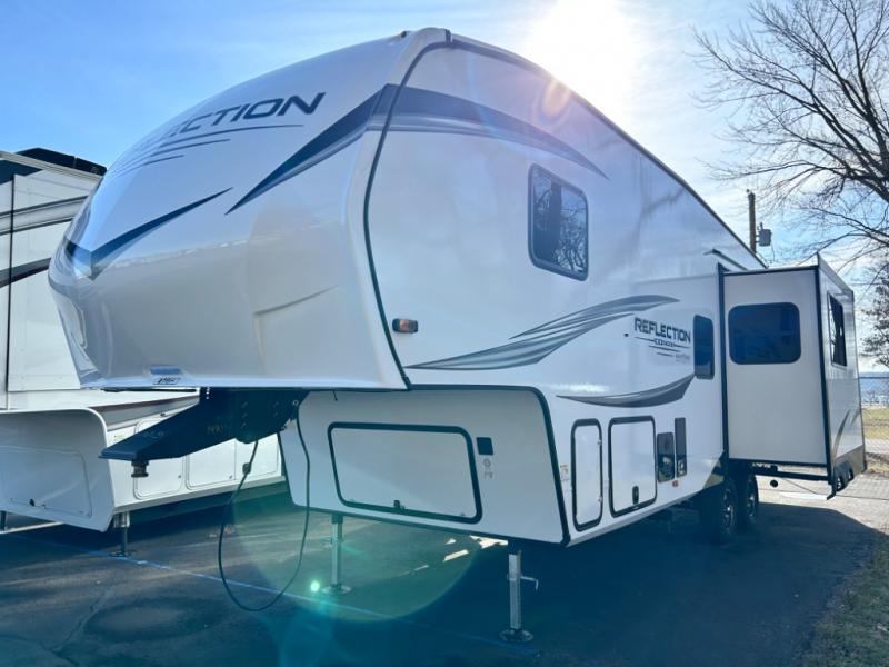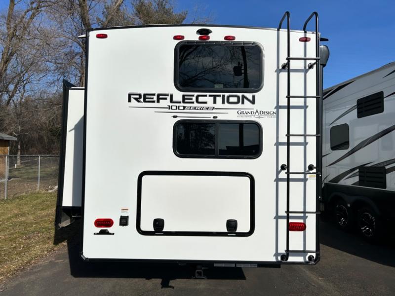Each Reflection 100 Series fifth wheel by Grand Design is affordable and packed with luxury for unforgettable camping memories! The MorRyde CRE3000 suspension system, Goodyear Endurance tires, and aerodynamic front cap with Max Turn radius will provide smooth towing from home to campground. And the solar package with a 180W/370W solar panel, 50 Amp charge controller and 12V refrigerator will allow you to camp for longer periods of time and in more locations! A heated and enclosed underbelly with circulating heat is included in the Arctic 4-Seasons Protection Package, along with 12V heat pads on all holding tanks, and a double insulated roof and front cap so you can camp all year long if you choose. You will appreciate having an on-demand water heater for hot showers after exploring, and the universal all-in-one docking station will let you monitor your RVs tanks levels and functions with ease. These models also include many luxurious interior features, such as premium Congoleum flooring, blackout roller shades, residential cabinetry, and matte black fixtures and hardware. Don't let the Reflection 100 Series fifth wheels pass you by!