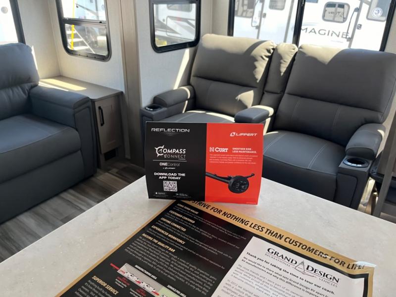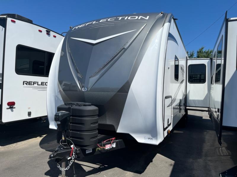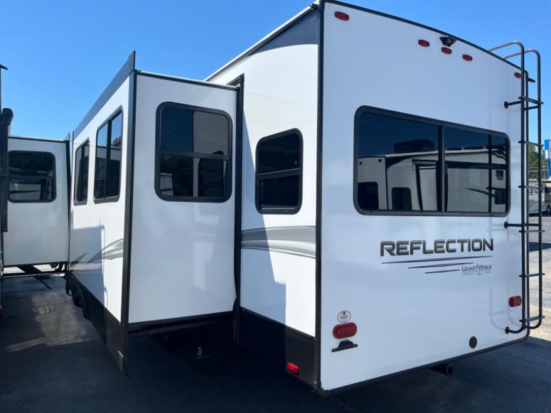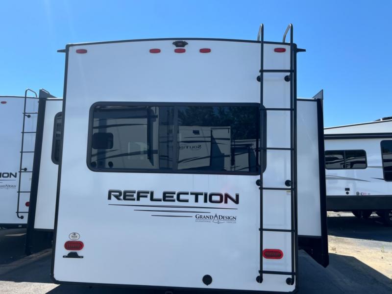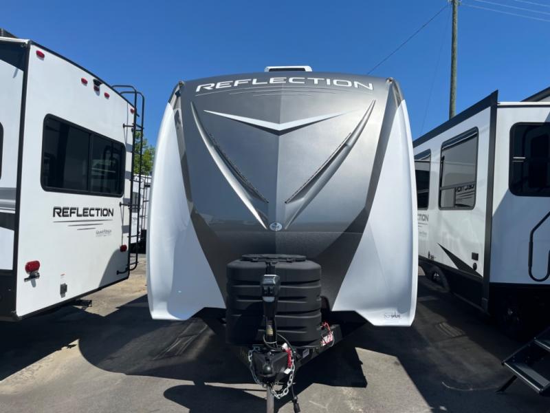 With any Reflection travel trailer by Grand Design, you will have a solar panel for off-grid camping and a 50 amp charge controller and inverter prep, a Universal All-In-One docking station, unobstructed pass-through storage, and nitrogen filled radial tires. Some other top features include the 30" stainless steel microwave, the maximum 7-foot headroom, and the ductless heating system with no vents in the floor to collect debris. Each is constructed of gel coat exterior sidewalls, residential 5" truss rafters, walk-on roof decking, a fiberglass and radiant foil roof and front cap insulation plus laminated aluminum framed side walls, roof and end walls in slide rooms. Choose luxury, value, and towability over all the others, take home a Reflection of your good taste!
