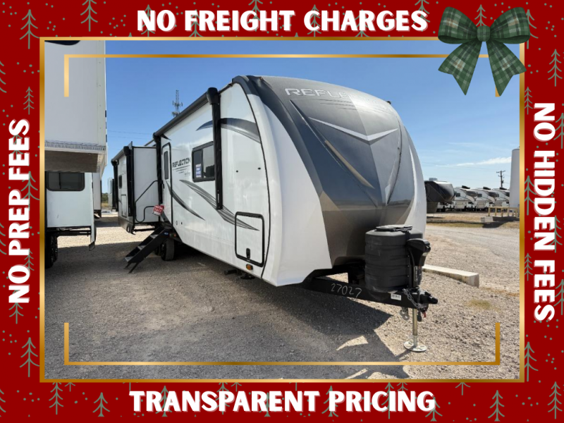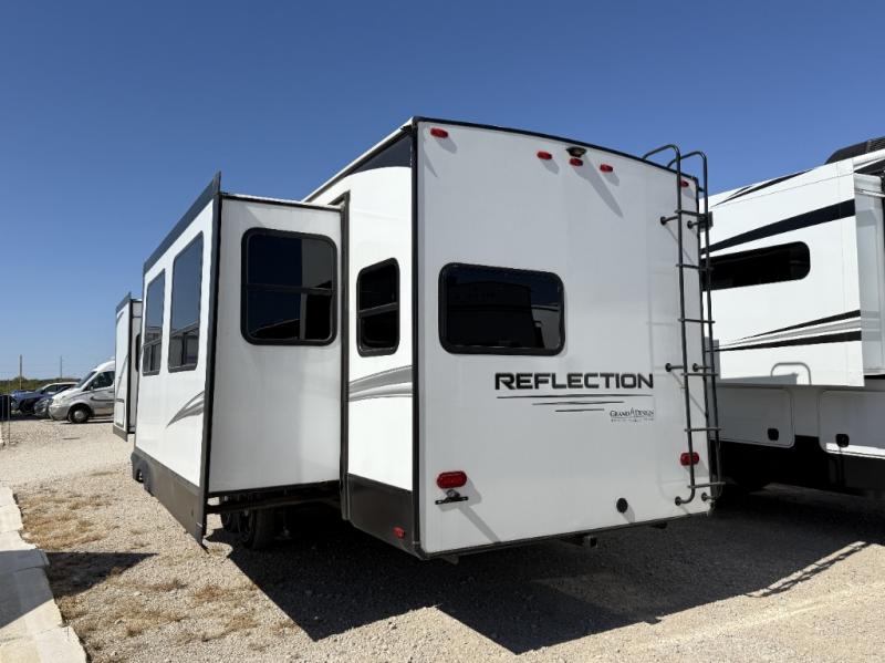 With any Reflection travel trailer by Grand Design, you will have a solar panel for off-grid camping and a 50 amp charge controller and inverter prep, a Universal All-In-One docking station, unobstructed pass-through storage, and nitrogen filled radial tires. Some other top features include the 30" stainless steel microwave, the maximum 7-foot headroom, and the ductless heating system with no vents in the floor to collect debris. Each is constructed of gel coat exterior sidewalls, residential 5" truss rafters, walk-on roof decking, a fiberglass and radiant foil roof and front cap insulation plus laminated aluminum framed side walls, roof and end walls in slide rooms. Choose luxury, value, and towability over all the others, take home a Reflection of your good taste!