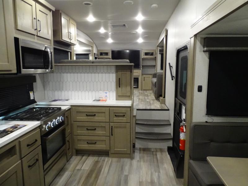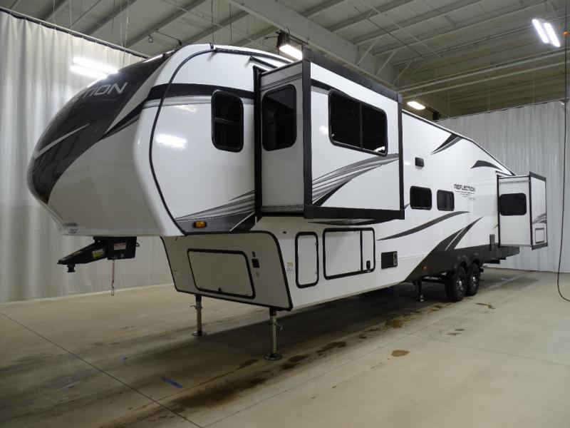 Each Reflection fifth wheel and travel trailer by Grand Design is packed with luxury features for an overall better camping experience! The MORryde 3000CRE suspension provides smooth towing to your destination and the durable construction materials mean you can enjoy your RV for years to come. These units include the Arctic 4-Seasons Protection Package that will extend your camping season thanks to the extreme temperature testing and maximum heating power. You will also appreciate the Solar Package that will allow you to do some off-grid camping and the Compass Connect system so you can control your RV's functions right from the palm of your hand. The interior of these travel trailers and fifth wheels are designed to make you feel at home with residential cabinetry, solid surface countertops, blackout roller shades, a spacious shower with a glass door, residential bedrooms, and the list goes on! Choose a Reflection today and start a new adventure tomorrow!