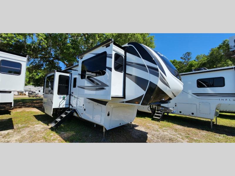 Explore the luxury and comfort of the 2024 Grand Design Solitude 380FL and start your journey with Campers Inn RV of Ocala. Your dream RV is waiting for you!