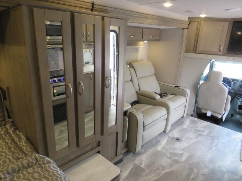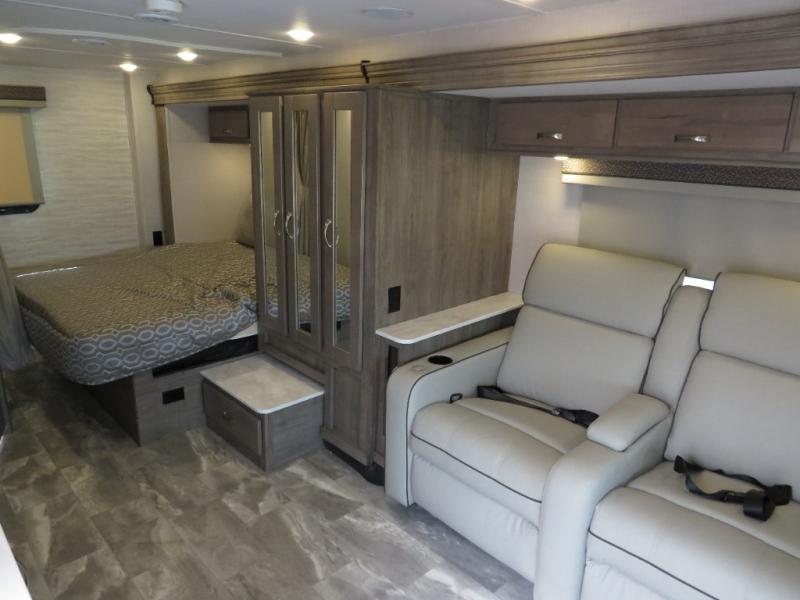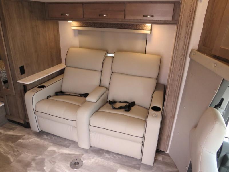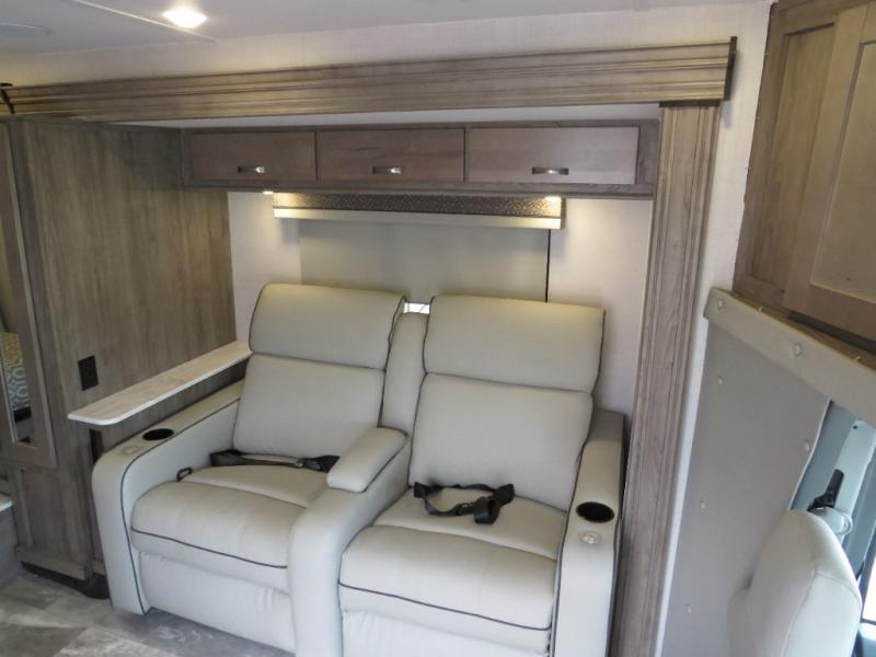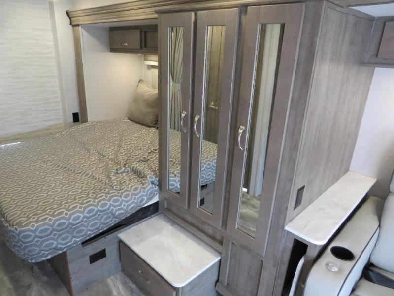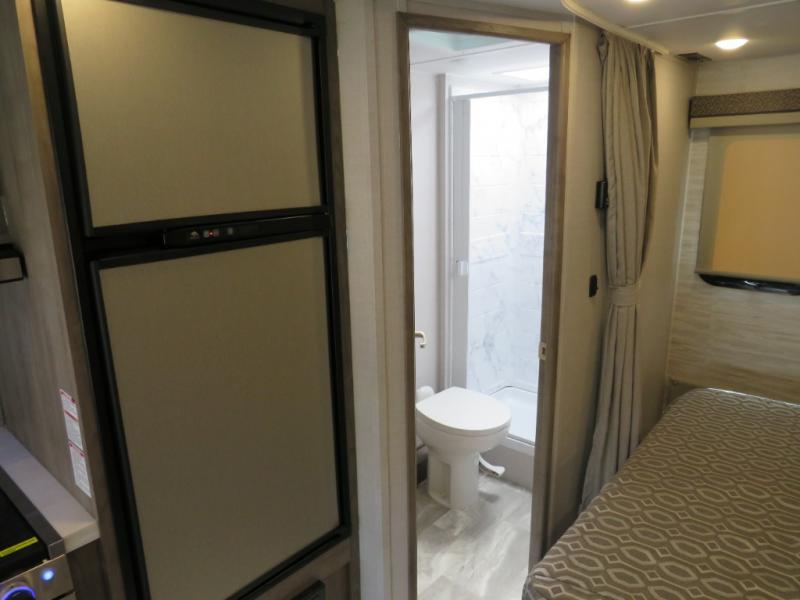 Get ready to see the summer sunshine, the fall colors, and/or the snow on the mountains when you travel in this easy to drive coach! The full-wall slide will impress you with all the floor space from front to back. You can sleep like royalty on the RV queen bed, store your clothes in the wardrobe and food in the pantry, and the booth dinette gives you a place to dine inside. The kitchen offers full amenities to make warm meals and keep leftovers cold in the refrigerator. And you can stay clean with the full bathroom in the rear corner. And don't forget about the electric awning outside, giving you an outdoor living area.